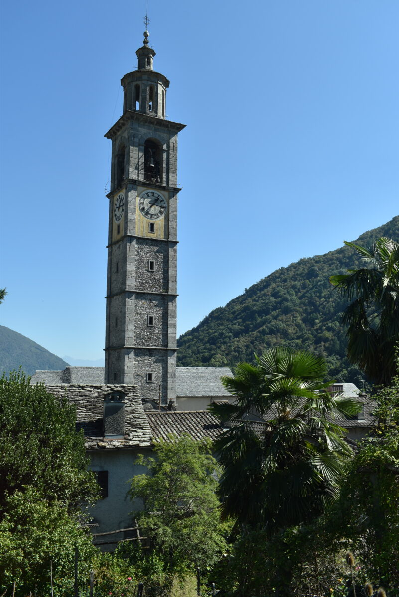Nach knapp 40 Kilometern ab Domodossola ist man in Intragna angekommen. Der Ort liegt nur ein paar Kilometer von Ascona entfernt am Rand einer Talstufe; im Ort geht es in mehreren Serpentinen nochmals etwa 70 Höhenmeter nach unten. Der kleine Ort leistet sich mit dem Campanile der Kirche San Gottardo den höchsten Kirchturm des Kantons Tessin: Stolze 65 Meter!