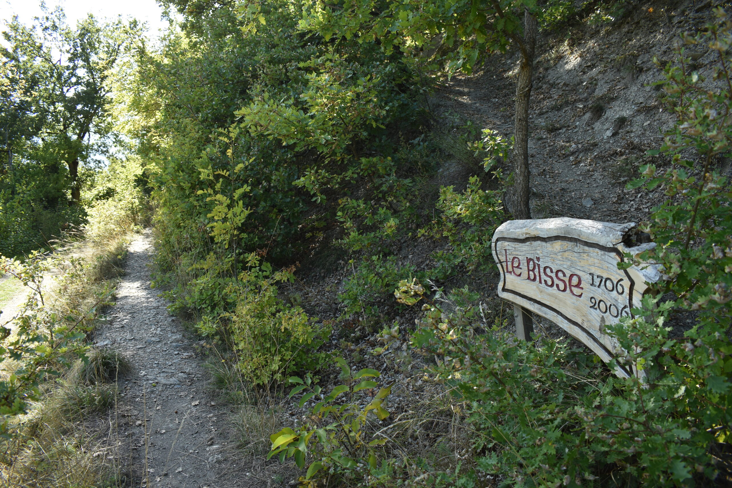 Manche Bisse, wie hier beim kleinen Ort Blignou unterhalb von Anzère ist inzwischen auch trockengefallen; auch hier verlaufen heute oft die Wanderwege.