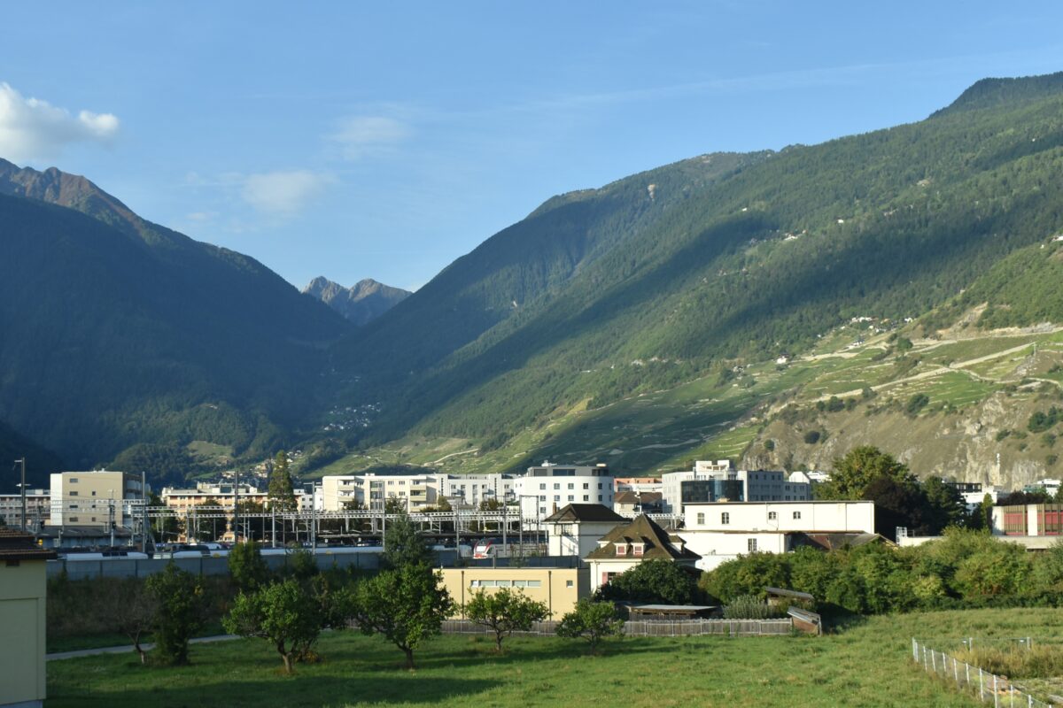 Martigny liegt an der Stelle, an der die Rhône, die durchs ganze Wallis ungefähr in dieselbe Richtung fließt, um 90 Grad nach “rechts” abbiegt. Von links mündet die Dranse, die vom Großen Sankt Bernhard her kommt.
