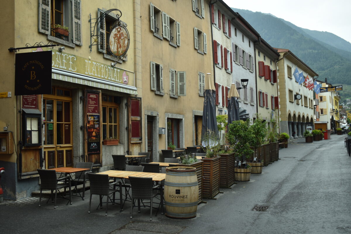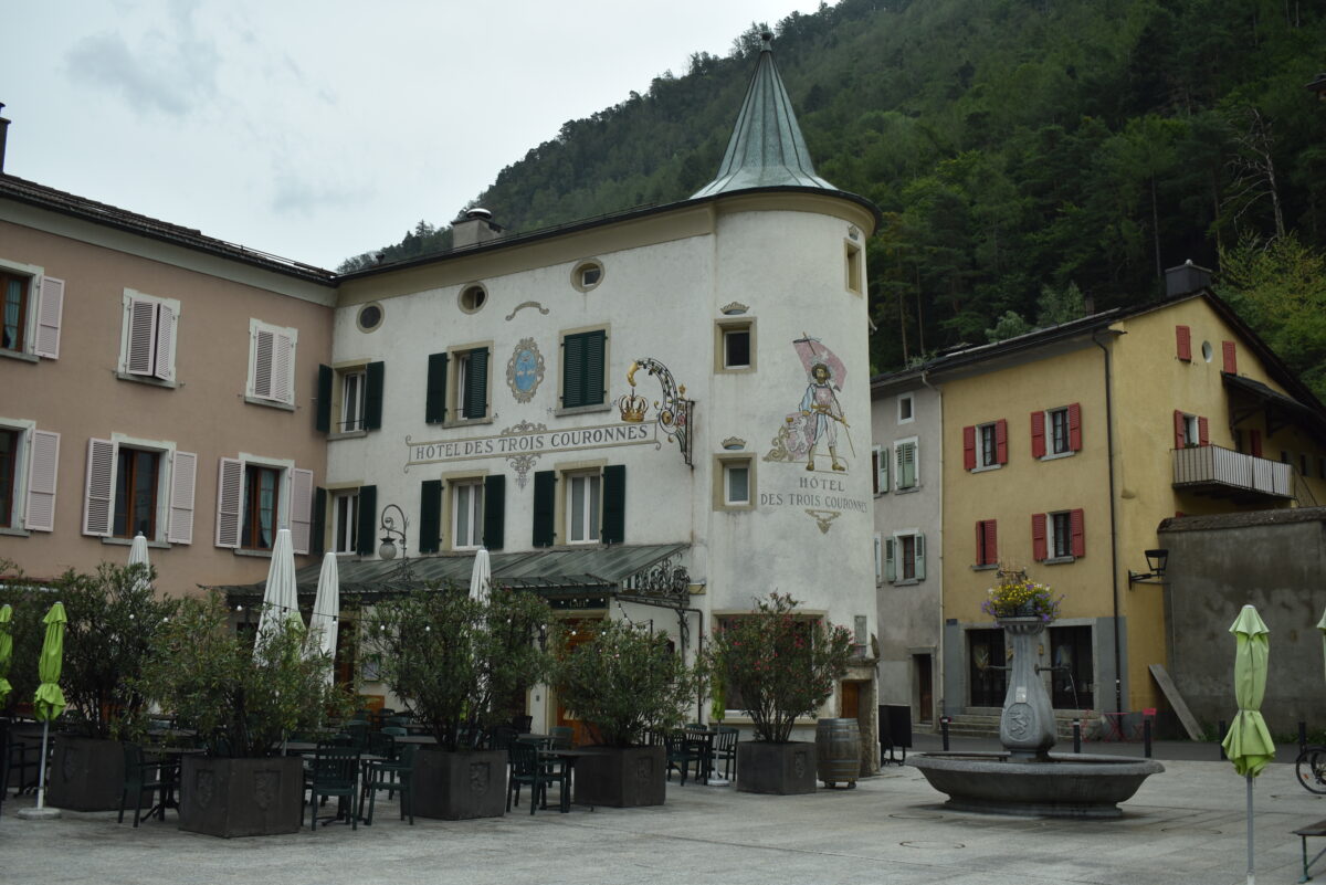 Das Startbild ist der Blick aus dem Hotelzimmer in einem Hotel, in dem alle Zimmer nach Künstlern benannt sind. Meins heißt “Chagall”. Martigny ist eine Kunst- und Kulturstadt, wie wir gleich sehen werden. Die Stadt ist mit etwas mehr als 20.000 Einwohnern nach Sion die zweitgrößte Stadt im Wallis. Es gibt zwei Ortskerne, die ein wenig voneinander entfernt liegen. An der Dranse liegt Martigny-Bourg, ein etwas kleinerer alter Ortskern entlang einer Gasse, die Rue du Bourg heißt.