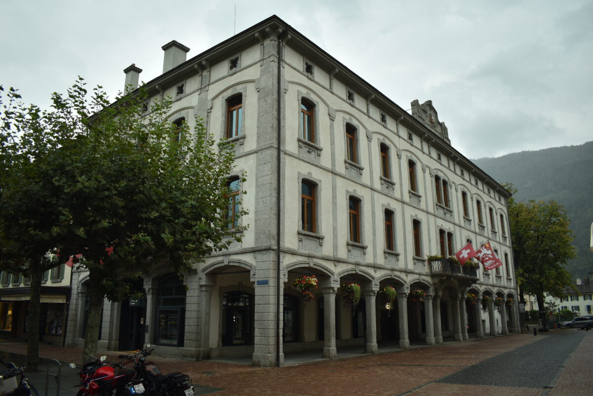 Das eigentliche Stadtzentrum liegt weiter nördlich schon im Talgrund des Rhônetals, hat eine Place Centrale und größere Verwaltungsgebäude wie das Rathaus.