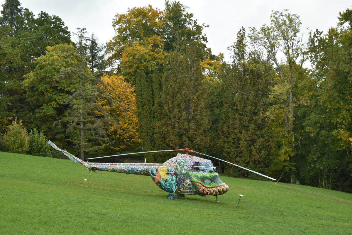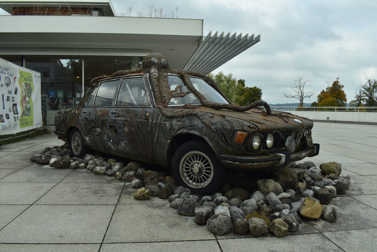 Zum Hubschrauber von oben paßt auch dieser von einem Riesenkraken okkupierte BMW 2500, der vor dem Museumseingang steht.