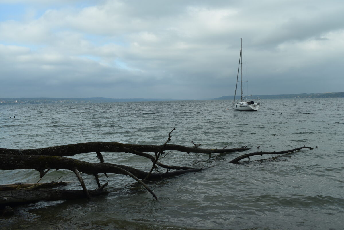 Zwischendurch war ja mal die Sonne rausgekommen, aber jetzt am Nachmittag ist es wieder bedeckt und am Seeufer auch ziemlich windig.