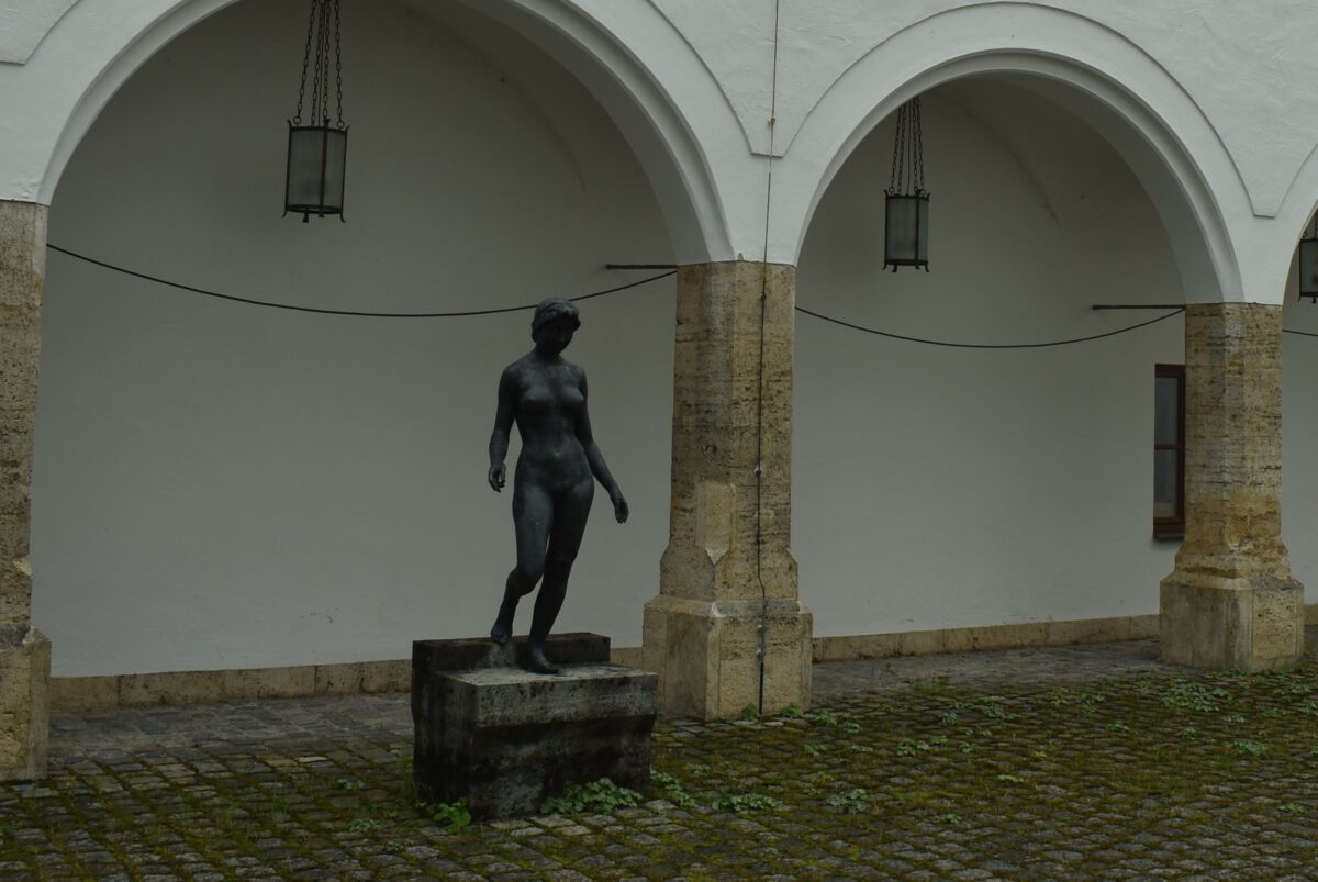 Heute ist hier das Finanzamt der Stadt untergebracht; vielleicht ist der Innenhof mit seinen Arkaden deshalb etwas karg eingerichtet.