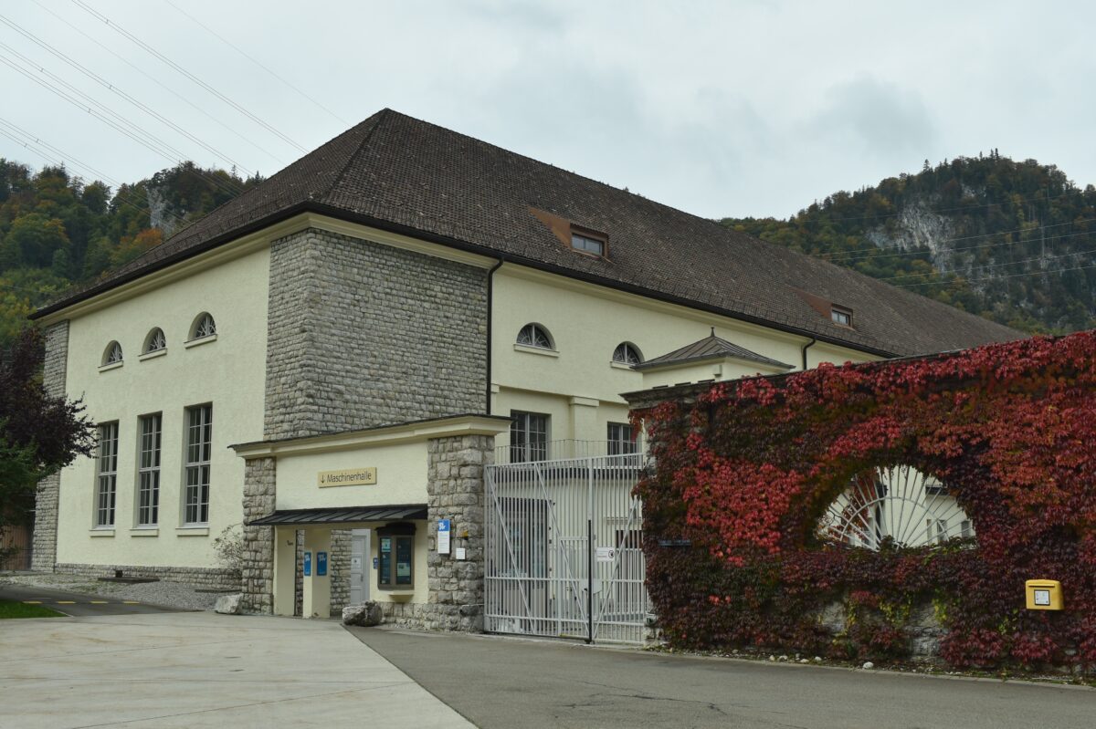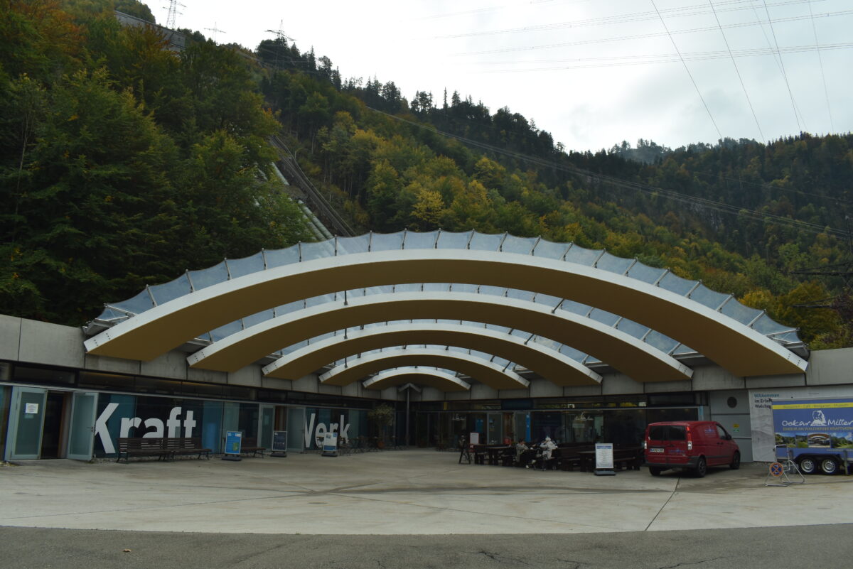 Unten an den Fallrohren steht das eigentliche Kraftwerk, dessen Kernstück die große Turbinenhalle ist. Die steht aber nicht direkt unterhalb der Fallrohre, sondern seitlich daneben. Zur Sicherheit, falls wirklich mal eines der Rohre brechen sollte (was aber noch nie passiert ist). Das Kraftwerk wurde 1918-24 gebaut; die Pläne stammen von Oskar von Miller. Der ist auch bekannt als Gründer des Deutschen Museums in München. Er hat übrigens auch im heutigen Saarland seine Spuren hinterlassen: In Homburg, das damals mit der Pfalz zu Bayern gehörte, steht noch das 1913/14 als “Pfälzische Überlandzentrale” gebaute Kraftwerk. Und das ist sogar schon im Hasenblog aufgetaucht.