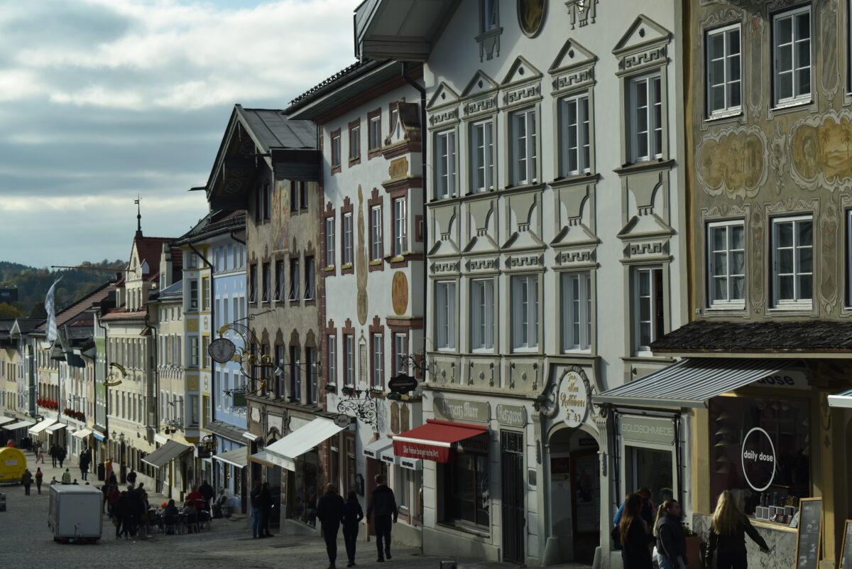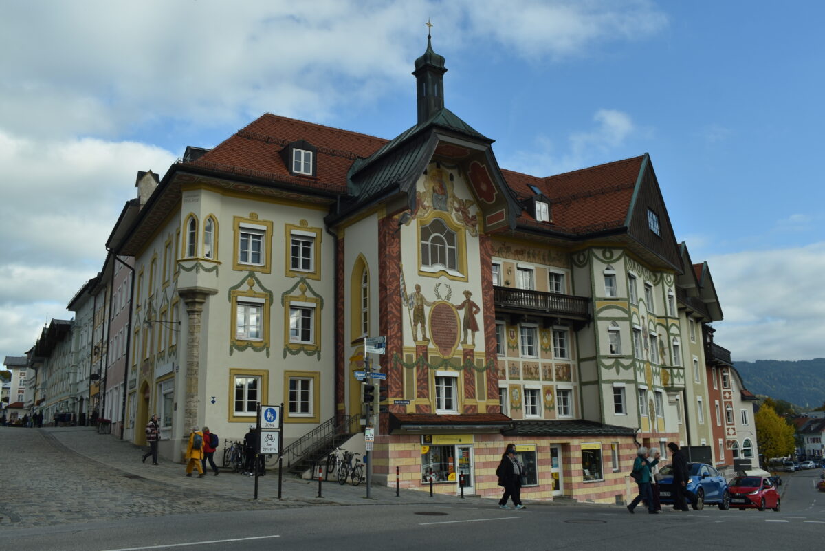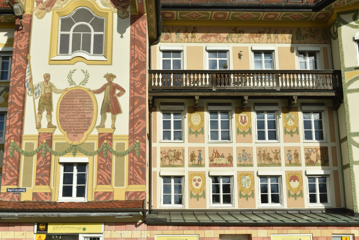 Die Lüftlmalerei kommt erst so richtig zur Geltung, wenn es die Sonne mal kurz durch die Wolken schafft.
