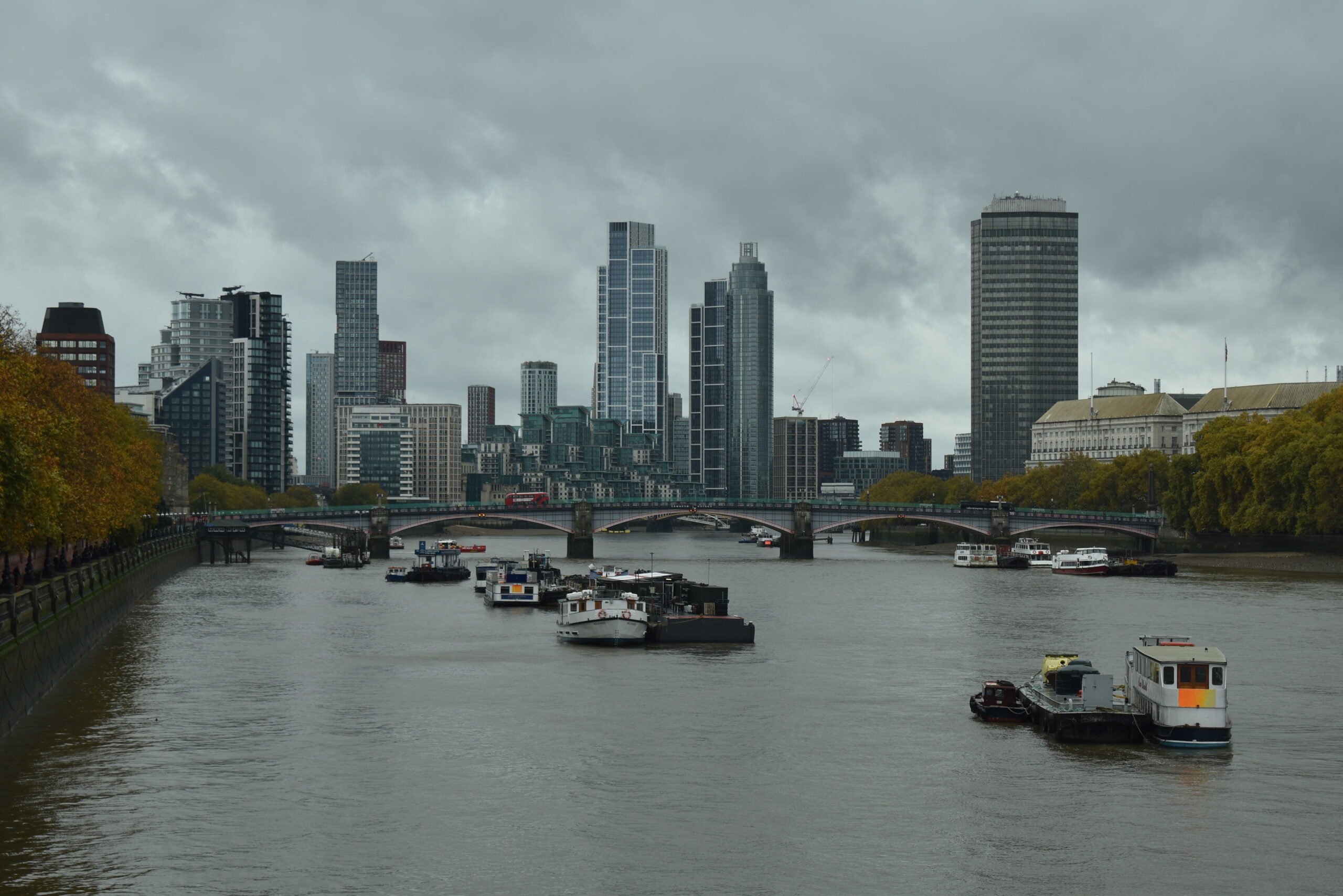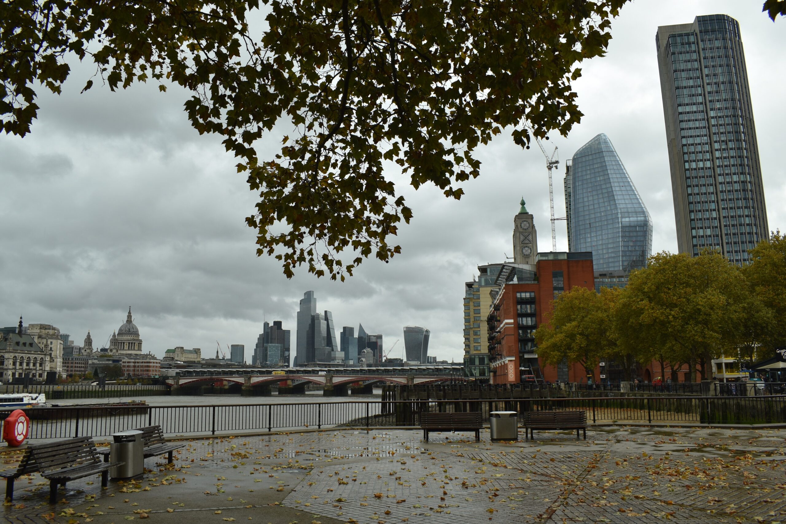 Zwischen Westminster Bridge und Blackfriars Bridge verläuft am rechten (südlichen) Themse-Ufer der Queen’s Walk, eine lange Uferpromenade.