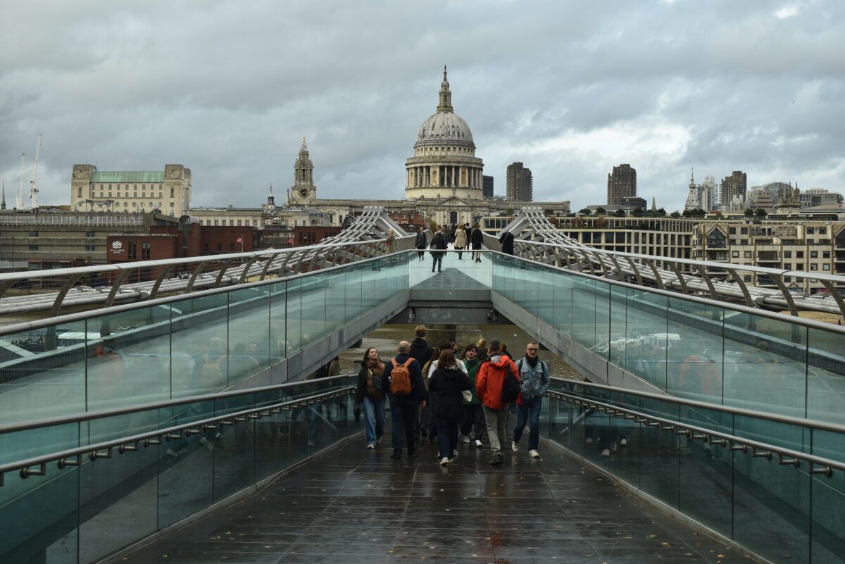 Zur Jahrtausendwende hat man nicht nur das Riesenrad ans Themseufer gestellt, sondern auch noch eine neue Brücke gebaut, die Millennium Bridge, die genau auf die Tate Modern bzw. auf die St. Paul’s Cathedral zuläuft.