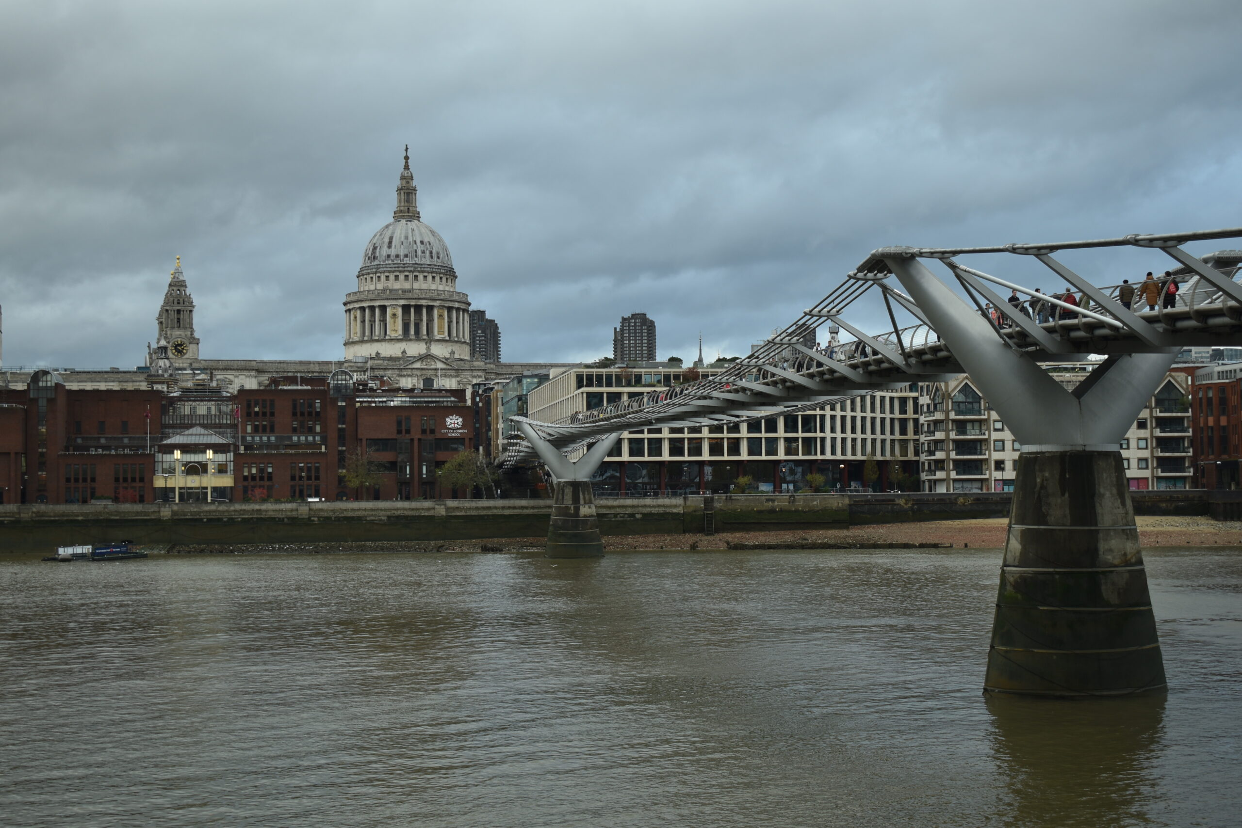 Zur Jahrtausendwende hat man nicht nur das Riesenrad ans Themseufer gestellt, sondern auch noch eine neue Brücke gebaut, die Millennium Bridge, die genau auf die Tate Modern bzw. auf die St. Paul’s Cathedral zuläuft.