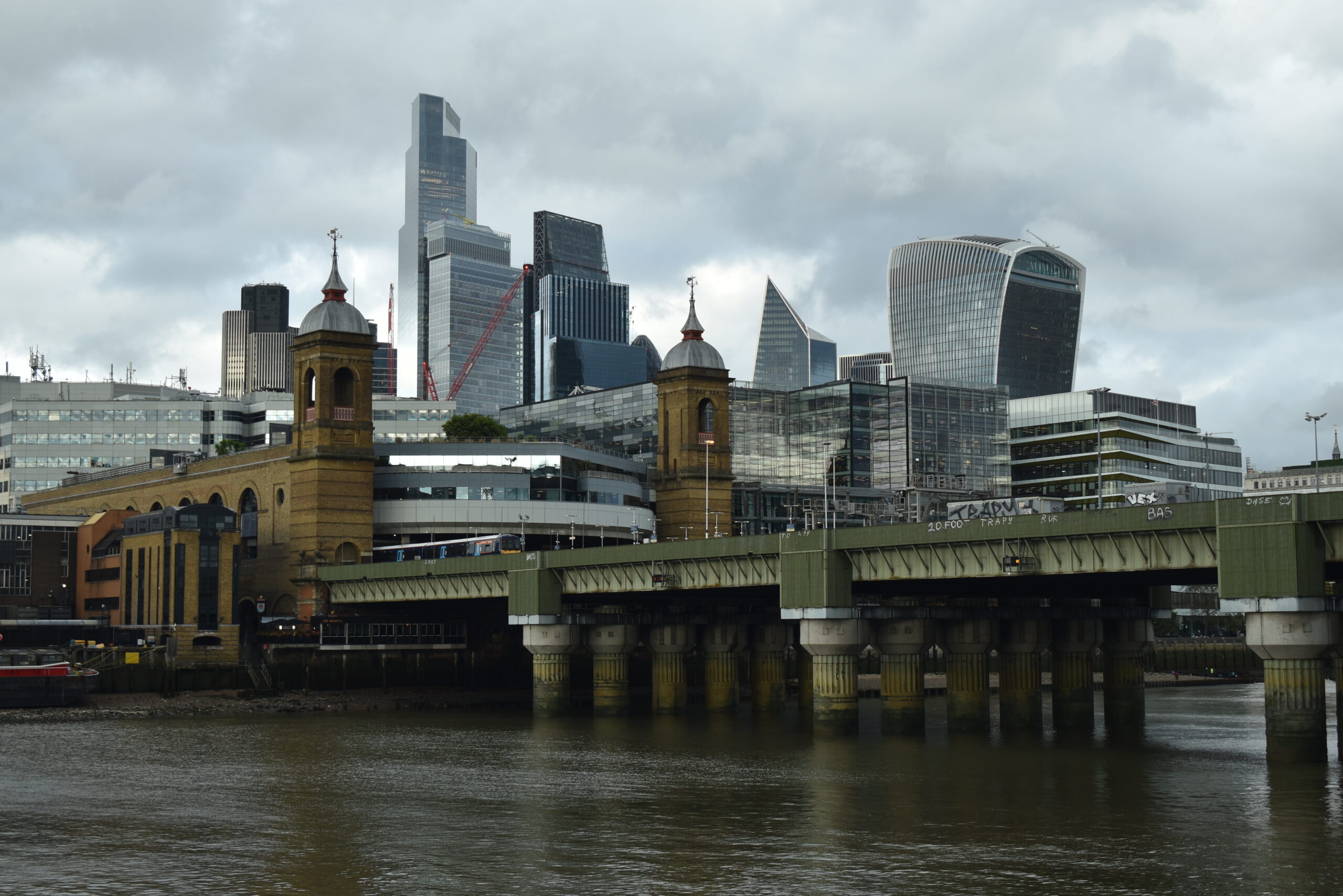 Hübscher jedenfalls als die benachbarte und sehr funkionale Eisenbahnbrücke (Cannon Street Railway Bridge).