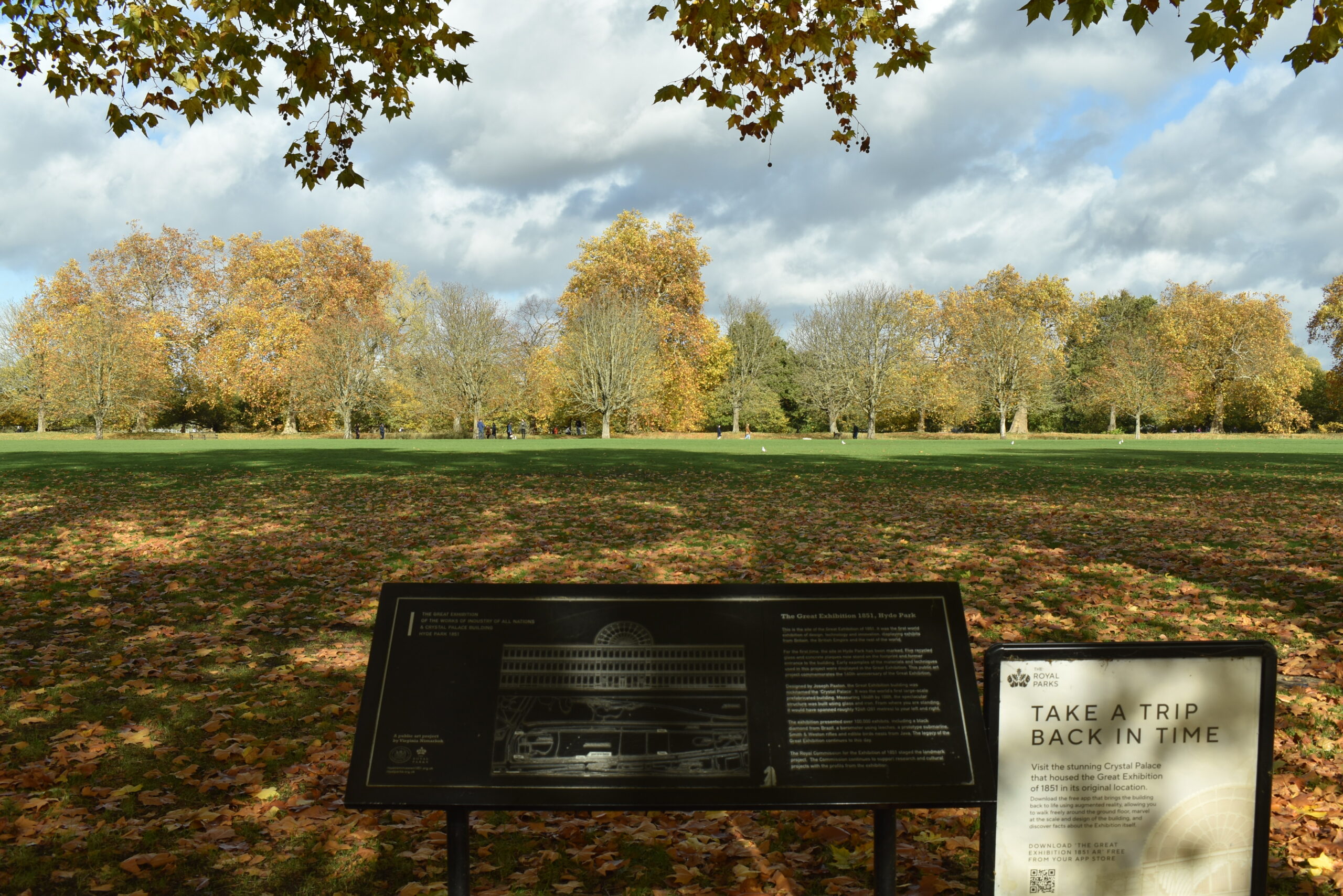 Im Hyde Park stand 1851 anläßlich der allerersten Weltausstellung der Crystal Palace des Architekten Joseph Paxton, ein revolutionärer Bau aus Gußeisen-Modulen, der leicht auf- und wieder abbaubar war. Das riesige Gebäude (etwa 600×150 Meter) wurde nach Ende der Weltausstellung demontiert und in Sydenham wieder aufgestellt. Dort gab er einem Stadtviertel und dem Fußballverein Crystal Palace FC den Namen. 1936 brannte er nieder. An der ursprünglichen Stelle im Hyde Park erinnert heute eine Tafel an den Kristallpalast.