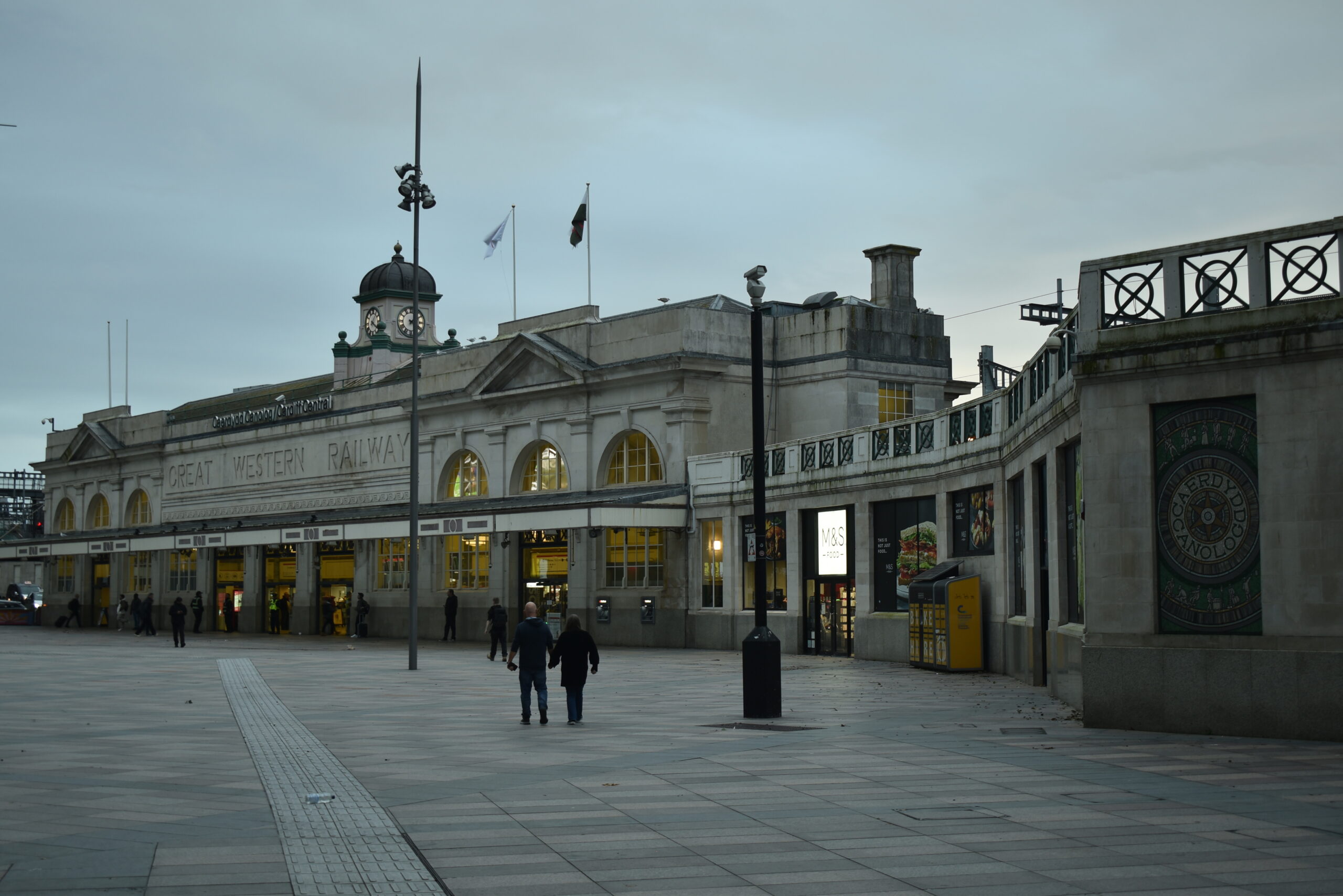 Von Bristol (bzw. Yate, wo der Reisehase für drei Tage wohnen darf) kommt man per Zug ziemlich schnell nach Cardiff. Die Great Western Railway fährt von Bristol Parkway, einem außerhalb der Stadt gelegenen Bahnhof, in etwa 30 Minuten bis Cardiff Central (und hält dabei meist nur in Newport, der drittgrößten Stadt in Wales). Das Empfangsgebäude von Cardiff Central bietet ein durchaus prächtiges Eingangsportal für die Stadt.