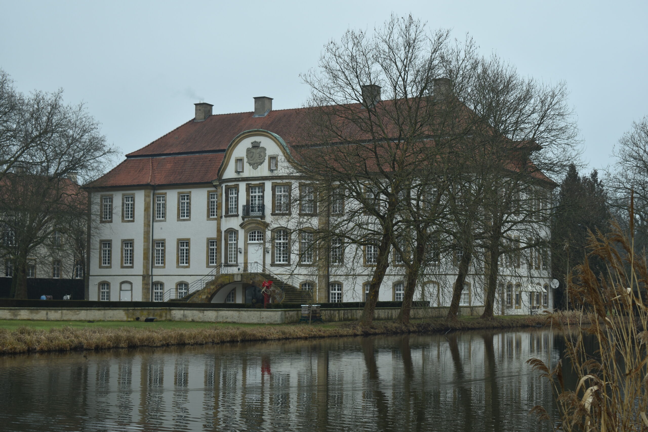 Und weil das Münsterland ja auch ein Land der Schlösser ist, trifft man hier auf jede Menge kleinerer Herrenhäuser und auch auf riesige Anlagen wie Schloß Nordkirchen (das allerdings heute nicht auf der Fahrtroute liegt). Westlich von Versmold und auf dem Gemeindegebiet von Sassenberg steht Schloß Harkotten, eine durchaus seltene Doppelschloßanlage. Harkotten hat nämlich ein Barockschloß…