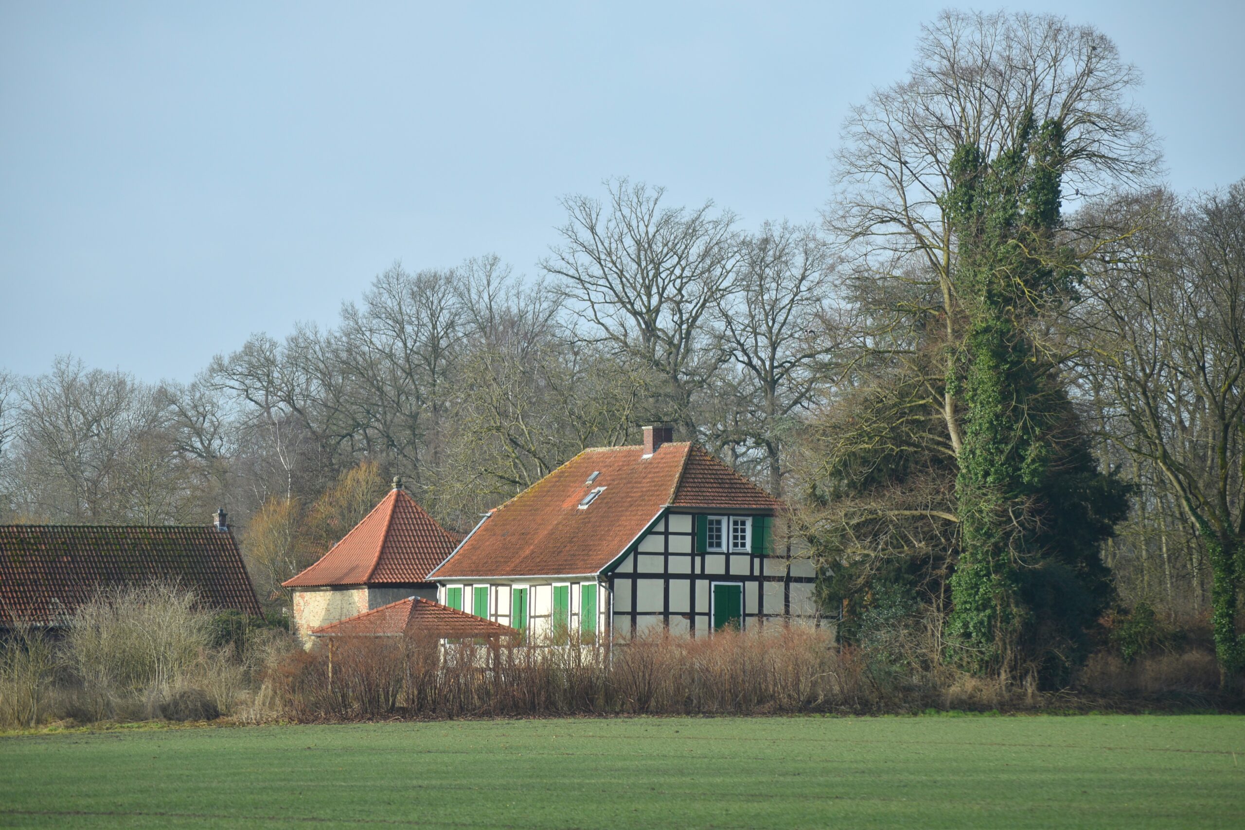 Die Tagestour geht von Bielefeld in Richtung Westen, durchs weitgehend flache Münsterland, und das sogar bei zwischenzeitlich blauem Himmel. Viele Felder und Wiesen, einige Bäche und Flüsse, Fachwerkhöfe.