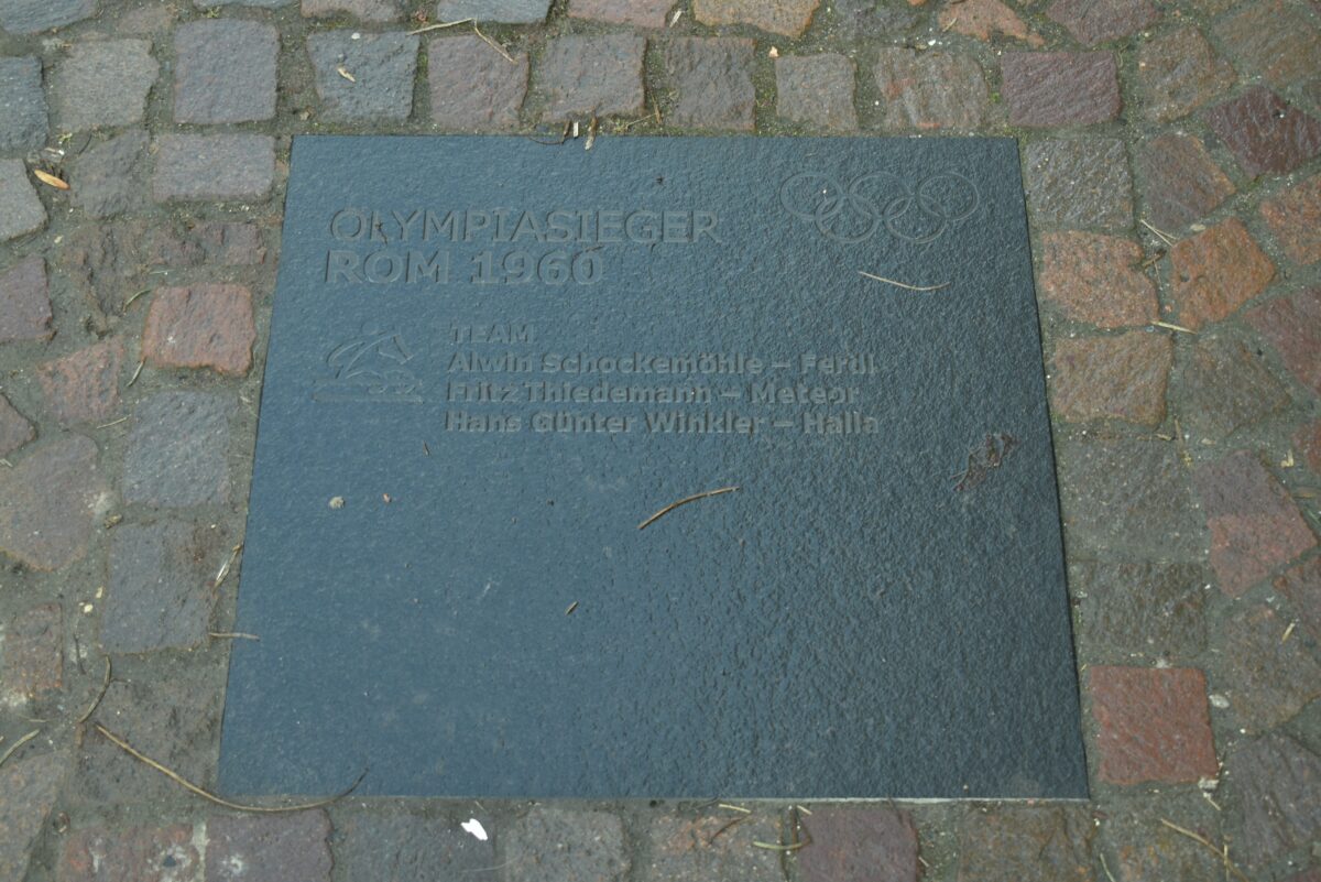 Viele erfolgreiche Reiter haben Verbindungen nach Warendorf. Die deutschen Reiter sind seit Jahrzehnten ja auch zuverlässige Medaillensammler bei Olympia – und das im Gegensatz zu den Rennrodlern in einer Sportart, die auch signifikant von anderen Nationen ausgeübt wird. Daher hat man eine Straße der Olympiasieger angelegt, auf der viele bekannte Namen auftauchen: Hans Günter Winkler, Ludger Beerbaum, Isabell Werth. Und Halla.