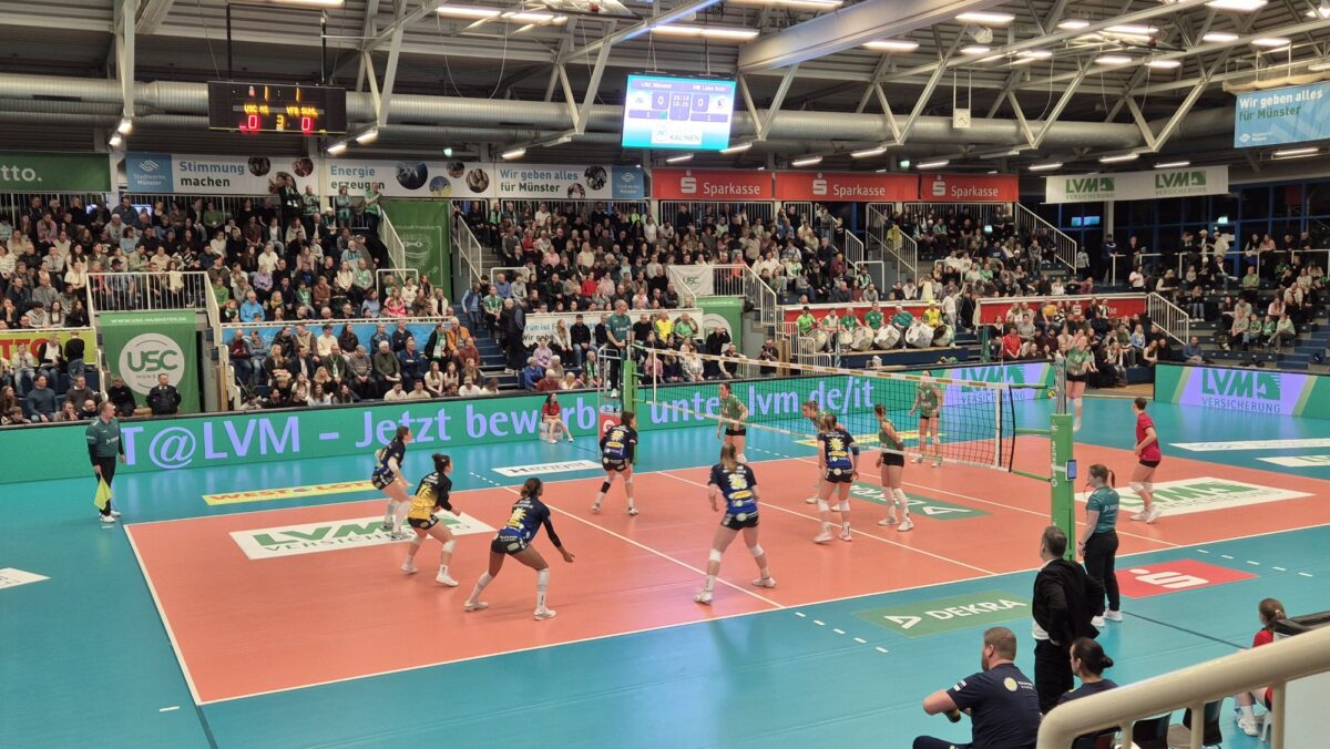 Münster ist ja mindestens in Arminen-Kreisen nicht gerade beliebt, was vor allem in der tiefgreifenden Abneigung gegen den Fußballverein aus der Stadt begründet ist. Aber es gibt ja noch andere Sportarten als Fußball. Im Volleyball zum Beispiel ist der USC Münster (neunmal Deutscher Meister, elfmal Pokalsieger) ein echter Traditionsverein. Und es ist der einzige Club, der seit Gründung der Frauen-Bundesliga (1976) ununterbrochen erstklassig spielt.
