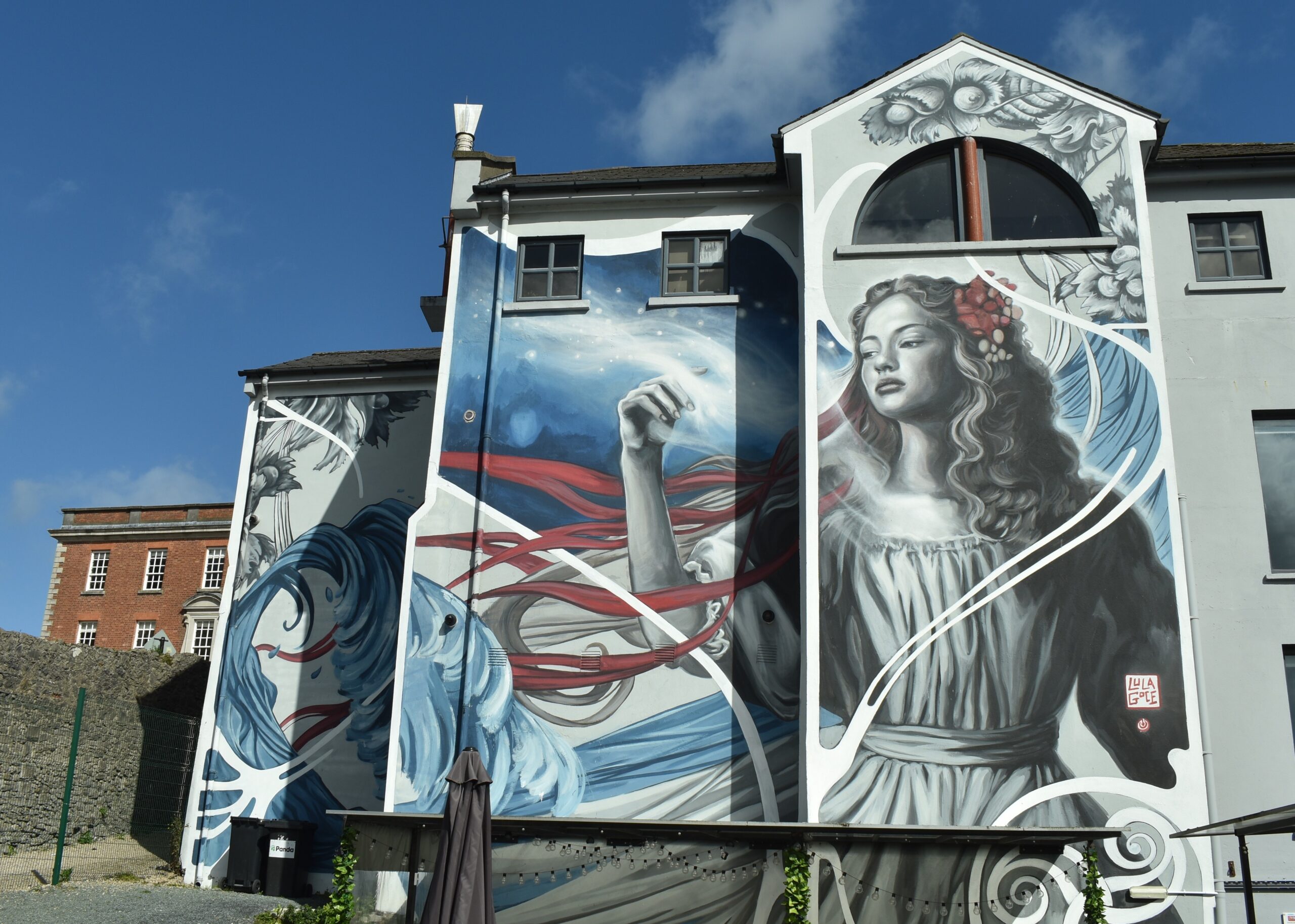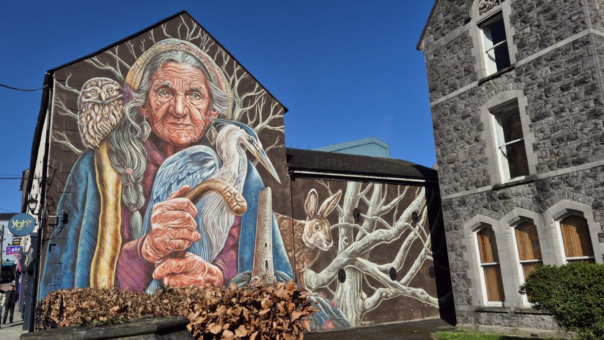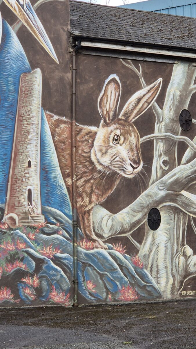 Überhaupt ist Drogheda natürlich keine Touristen-Hochburg, sondern eher etwas rauh und spröde und zumindest nicht auf Hochglanz poliert. Aber genau deshalb wollte ich für die zwei Wochen hierher und nicht zum Beispiel nach Killarney oder Dún Laoghaire. Und es gibt sehr nette Ecken, weil das Abbey Shopping Centre natürlich nicht der Normalfall ist. Gleich daneben zum Beispiel an den Ruinen der namensgebenden Old Abbey sind die Gebäude restauriert, bieten Büroflächen und Coworking Areas und an den Außenwänden auch noch schöne Wandgemälde.