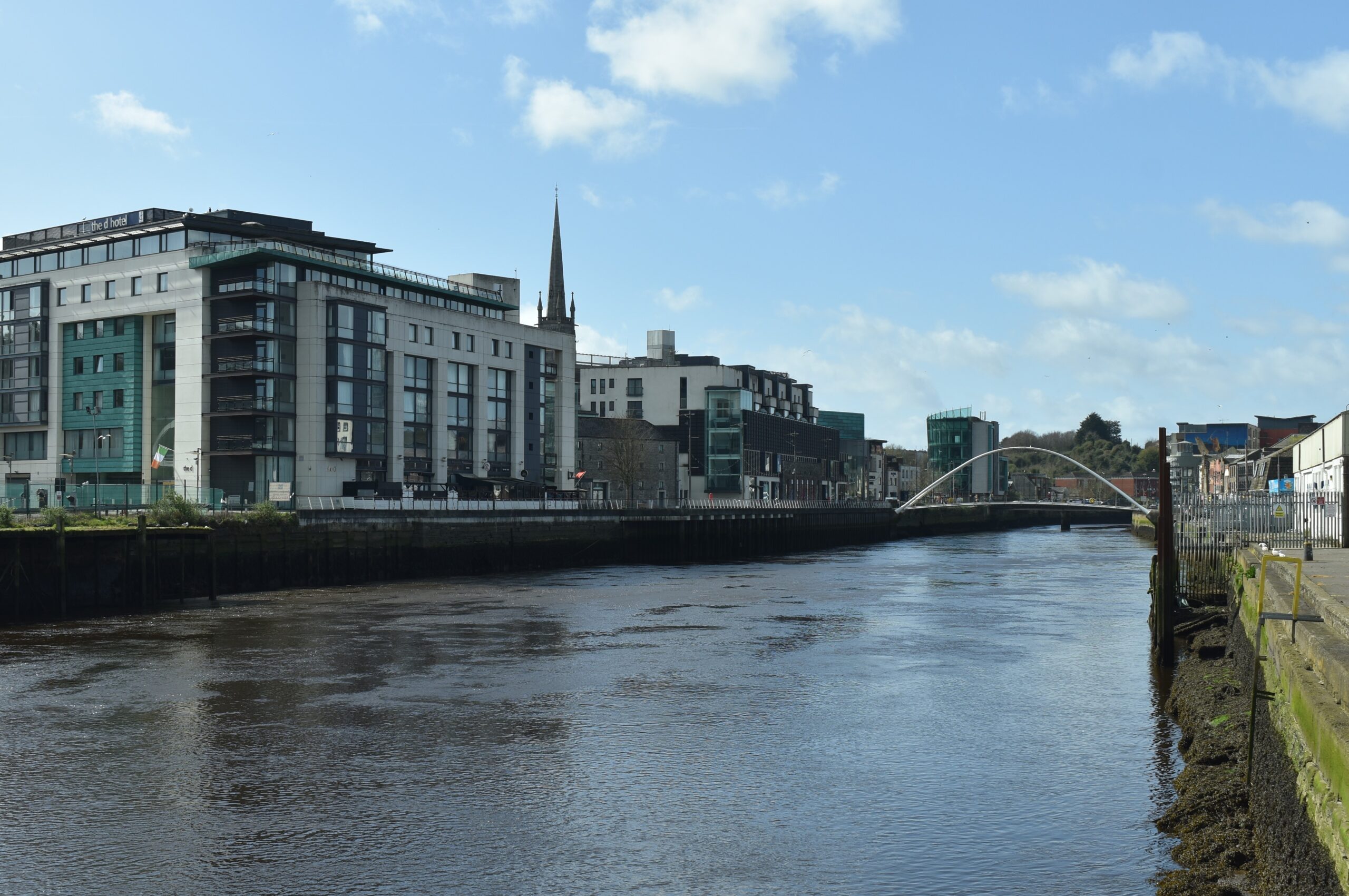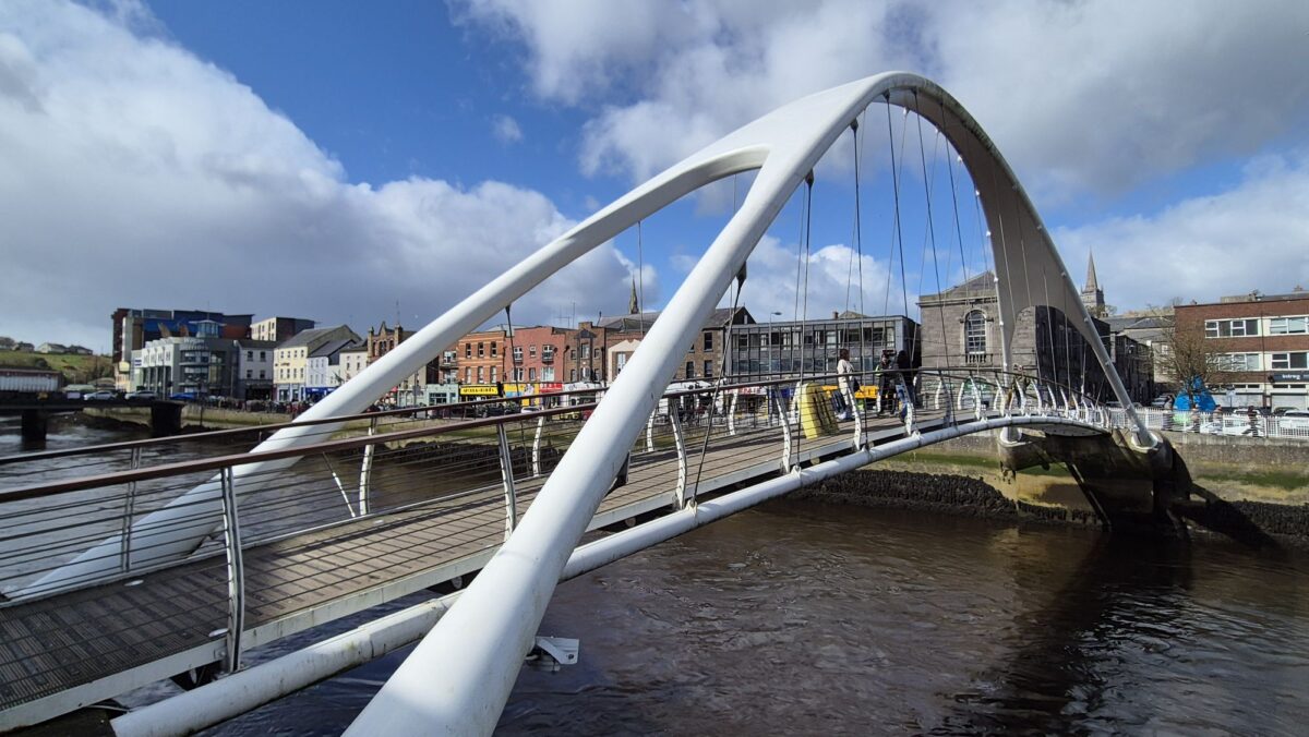 Neben den Kaimauern, an denen früher zahlreiche Handelsschiffe lagen (ein Pub in der Nähe heißt standesgemäß “The Mariner”) führt diese moderne Brücke über den Boyne.