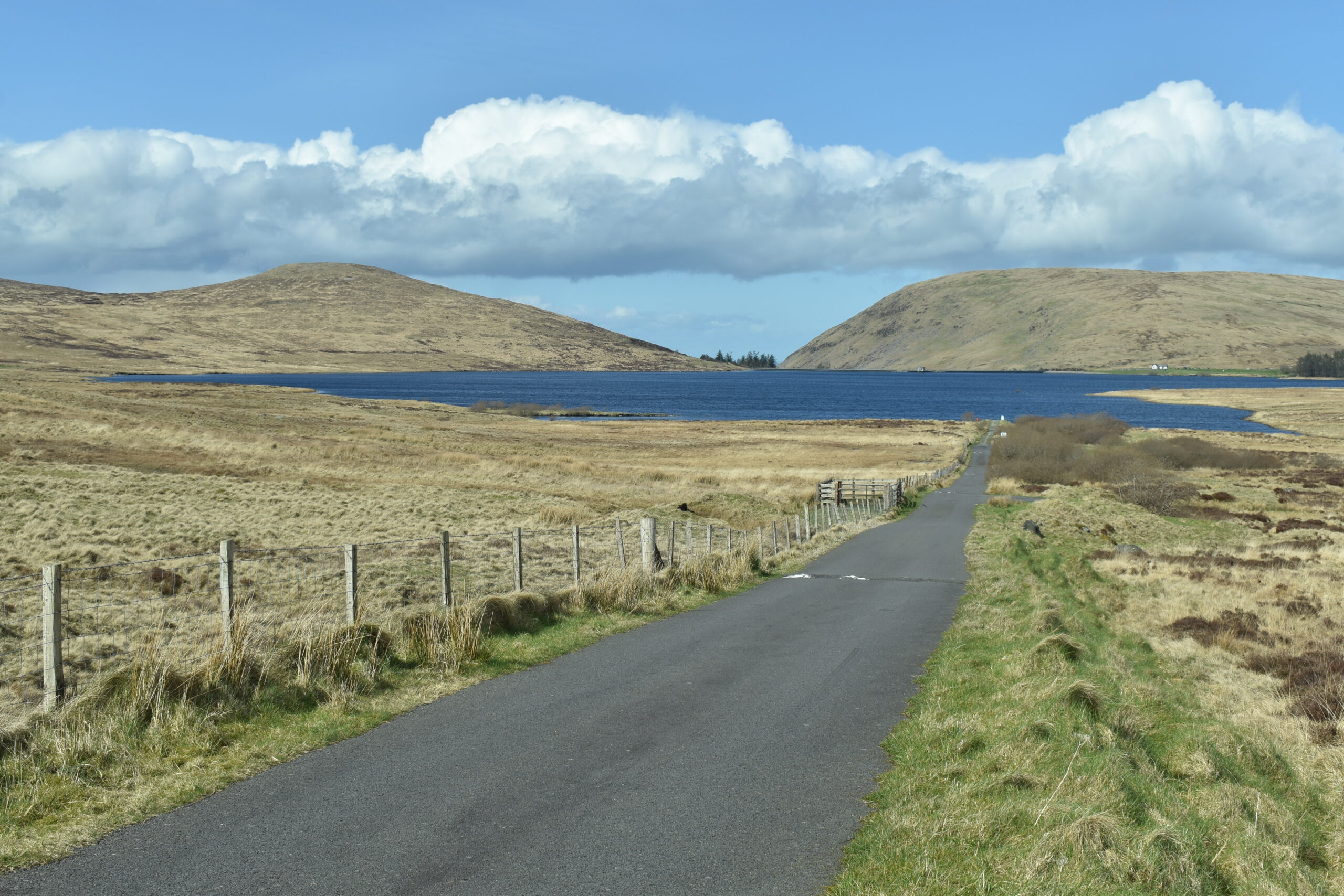 Von Annalong an der Küstenach Hilltown führt eine teils recht schmale, aber sehr gut befahrbare Straße durch das Gebirge. Der Fahrweg im folgenden Bild ist aber nur eine Stichstraße zum Spelga Reservoir, einem Stausee im zentralen Bereich des Gebirges.