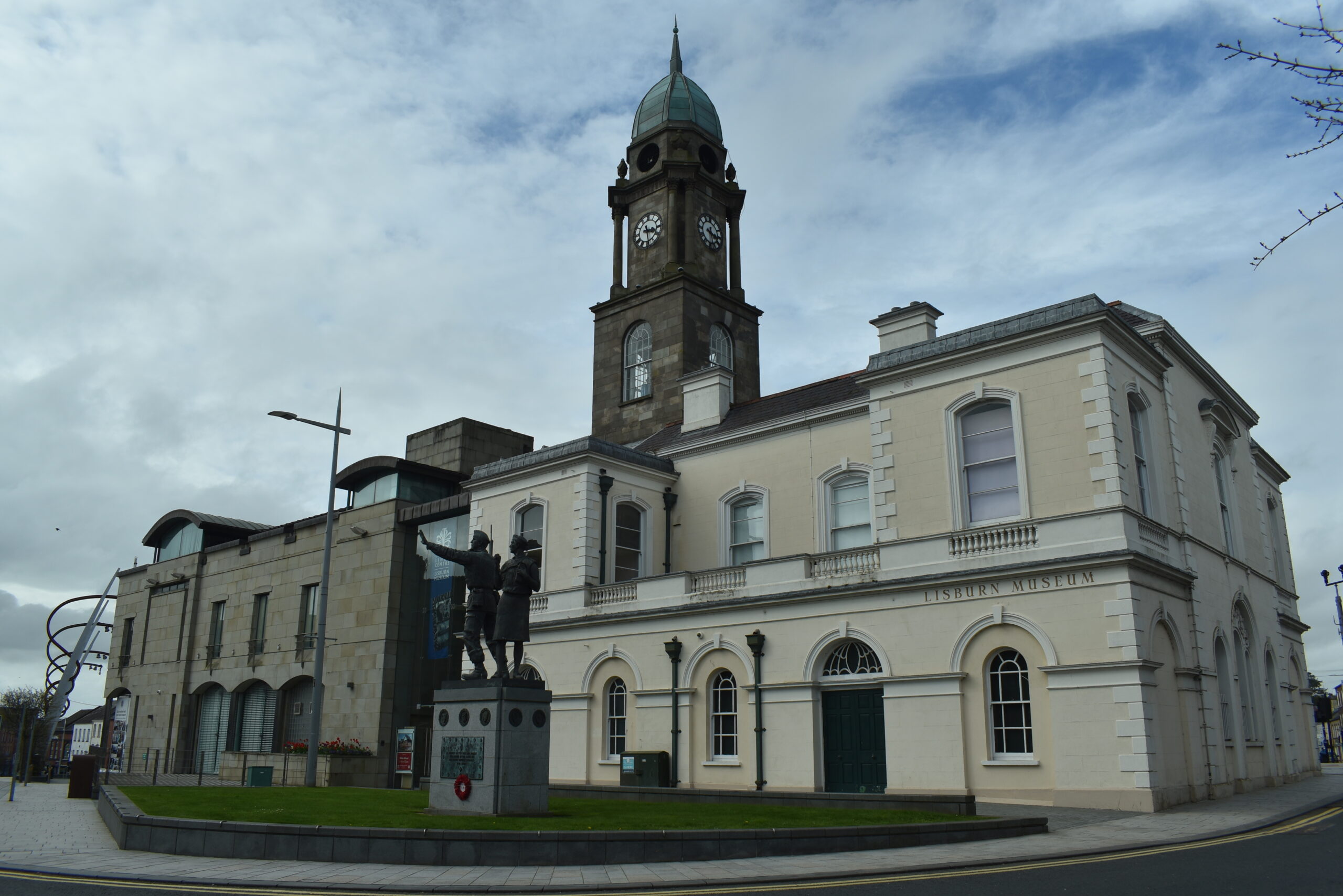 In Lisburn war ich vor ein paar Jahren schon mal, um dem Distillery F.C. einen Besuch abzustatten, einem Club, der tatsächlich mal im Umfeld einer Whiskey-Distillerie entstanden ist, während des Bürgerkrieges dann aber aus Belfast auszog und in Lisburn eine neue Heimat gefunden hat. Das Stadtzentrum von Lisburn kenne ich daher schon, zum Beispiel das Gebäudeensemble aus Rathaus und Textilmuseum.