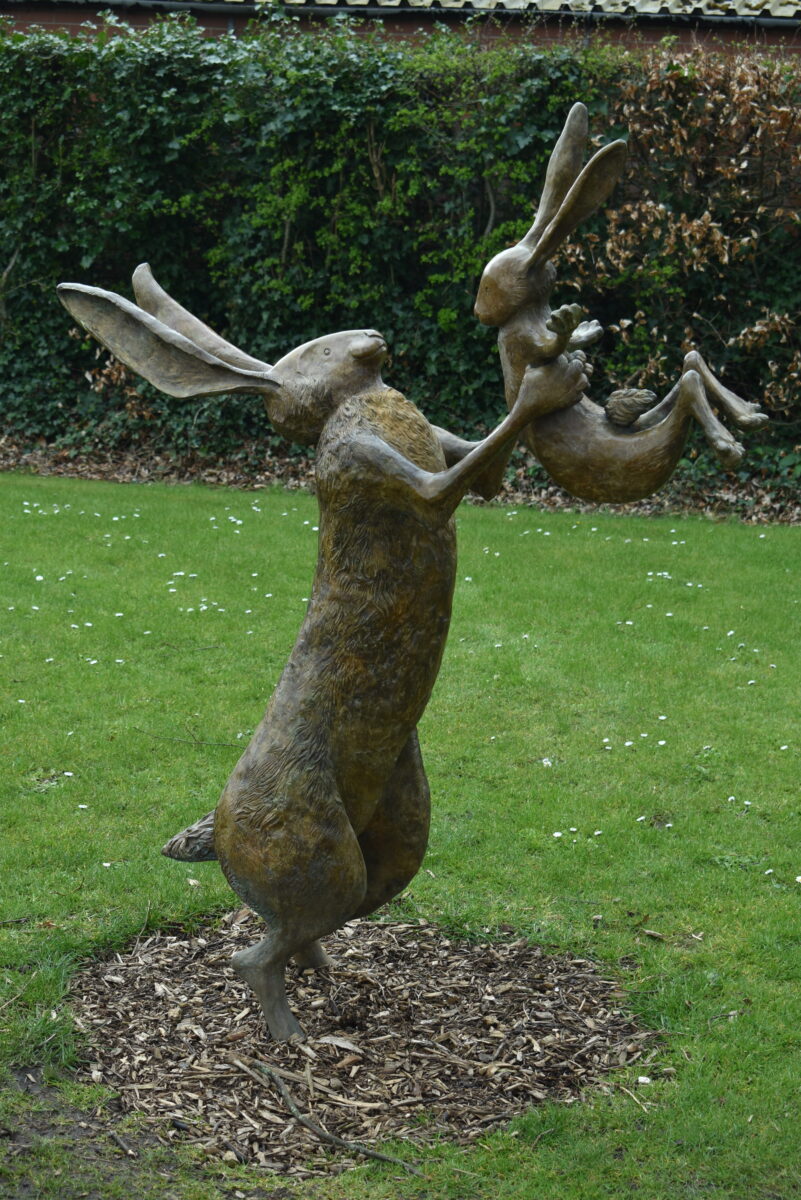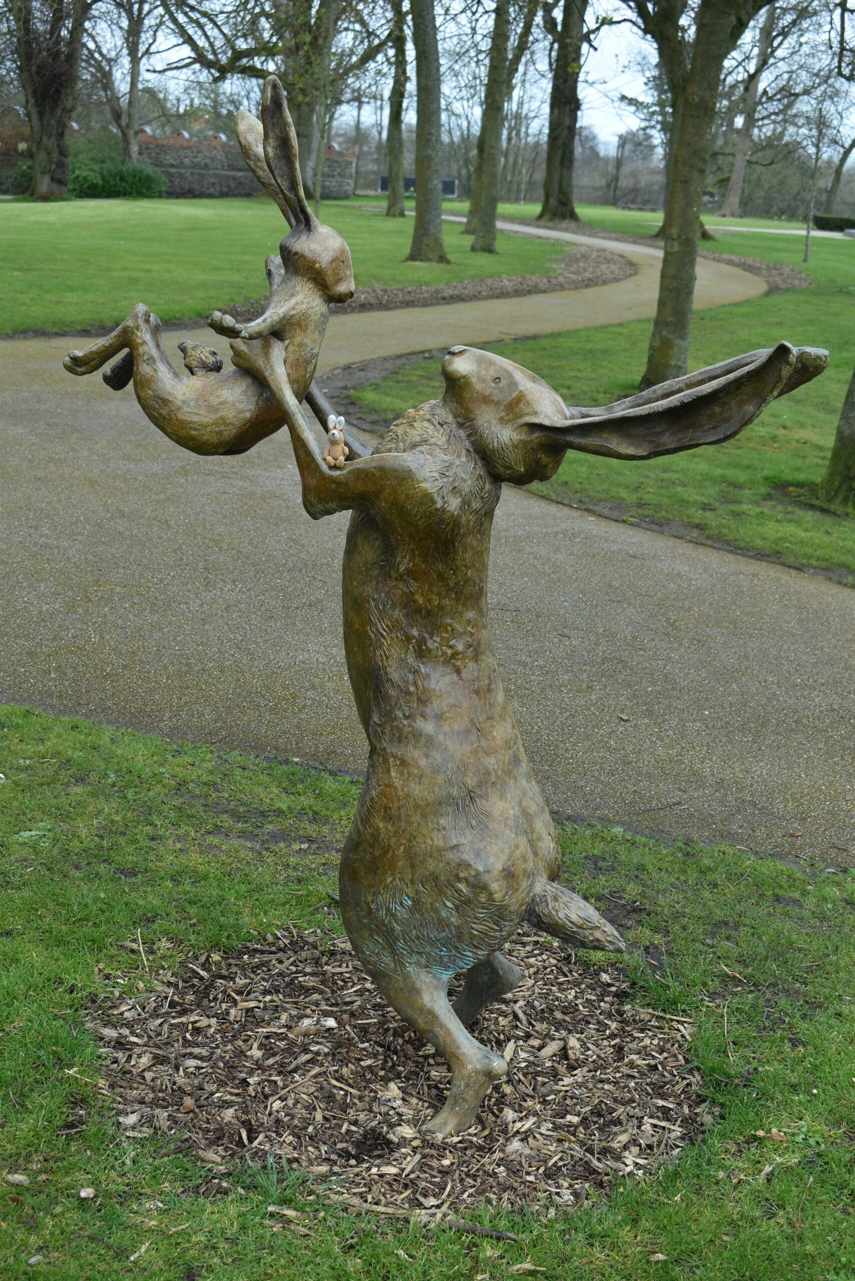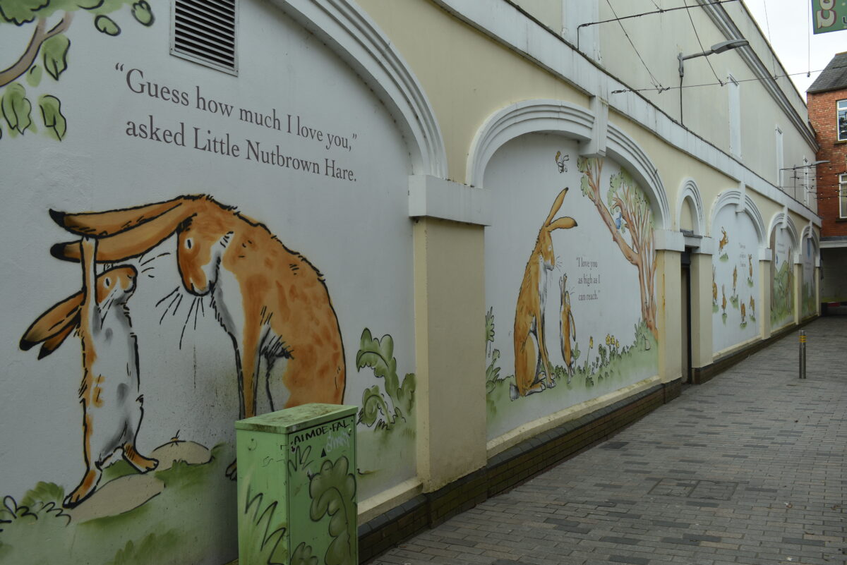 Grund für diese großartigen Skulpturen ist, daß der Autor Sam McBratney lange in Lisburn lebte. Sein Name ist vielleicht nicht so bekannt, aber sein bekanntestes Kinderbuch: “Guess how much I love you” (“Weißt Du eigentlich, wie lieb ich Dich hab?”) handelt von zwei Hasen, einem großen und einem kleinen, wurde ein millionenfach verkaufter und in fast 60 Sprachen übersetzter Beststeller und sollte in jedem Regal stehen. In JEDEM!
