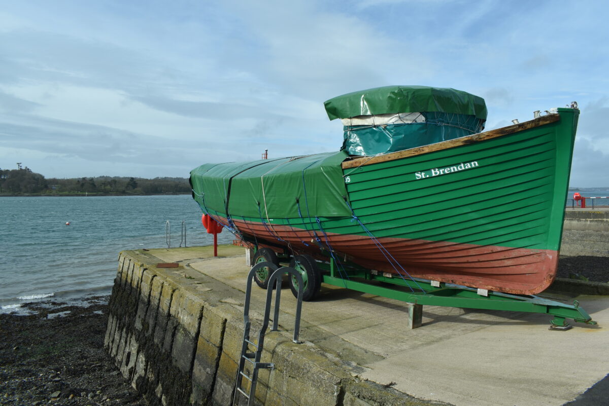 Naja, nicht ganz, aber so ungefähr. Hinter der Häuserzeile am Hafen, in dem die Boote bei Ebbe keine Handbreit Wasser mehr unter dem Kiel haben, sieht man den Turm von Strangford Castle aus dem 16. Jahrhundert. Der meistfrequentierte Platz in Strangford ist aber auf jeden Fall der Fähranleger, denn hier verkehrt im Halbstundentakt die Fähre zwischen Strangford und dem gegenüber liegenden Portaferry.