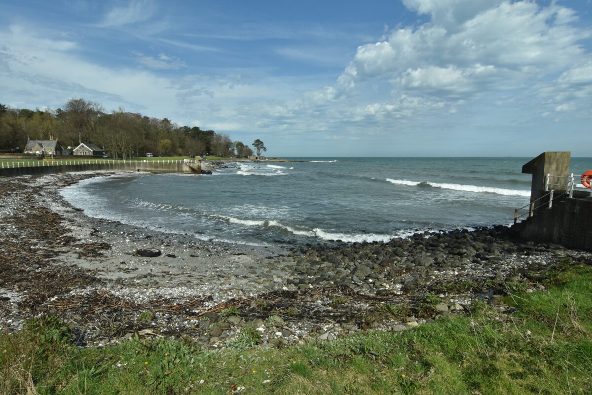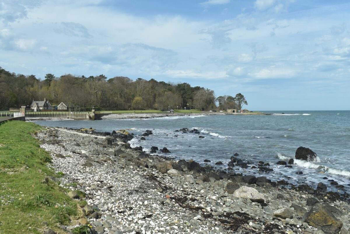 Weiter geht die Fahrt entlang der Küste, die hinter Larne rauher und wilder wird, wie hier an der halbrunden Ballygally Bay.