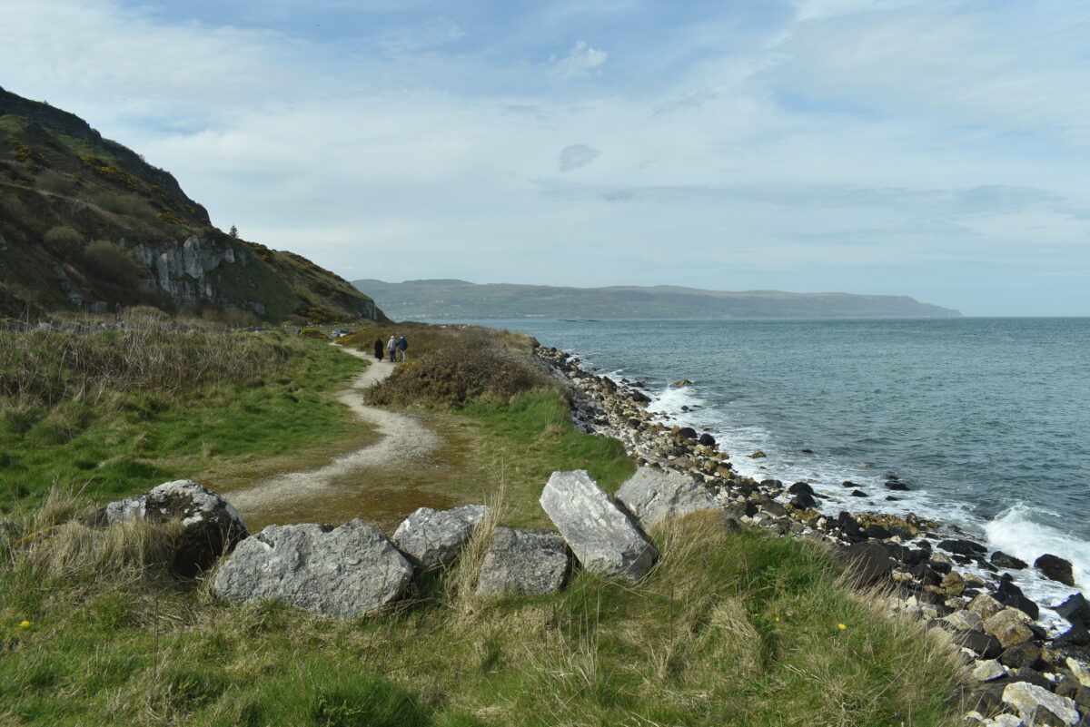 Im Hintergrund sieht man die Halbinsel Islandmagee, einen gut 20 Kilometer langen Hügelrücken, der vor der irischen Nordostküste liegt.