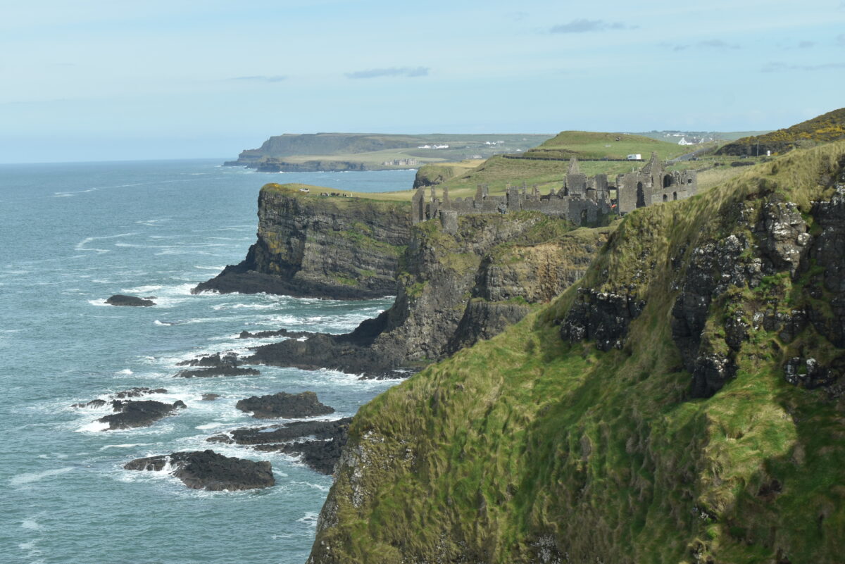 Ein paar Kilometer vom Giant’s Causeway entfernt steht Dunluce Castle sehr malerisch am Klippenrand, wobei die romantische Lage im 16. Jahrhundert wohl kaum der Grund für den Bau der Burg gewesen sein dürfte. Zumal die Legende besagt, daß die Küche der Burg mitsamt Personal irgendwann ins Meer abgestürzt ist. Ob das wirklich passiert ist, weiß man aber nicht, ob es, wie erzählt wird, der Grund war, die Burg als Wohnsitz endgültig aufzugeben, auch nicht.