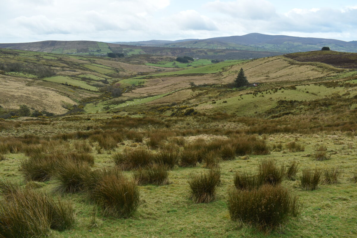 Die Landschaft der Sperrins besteht aus einer weiten, bergigen Hochfläche mit Hügeln und dazwischen weiten Wiesenflächen, die das eine oder andere Hochmoor verbergen.
