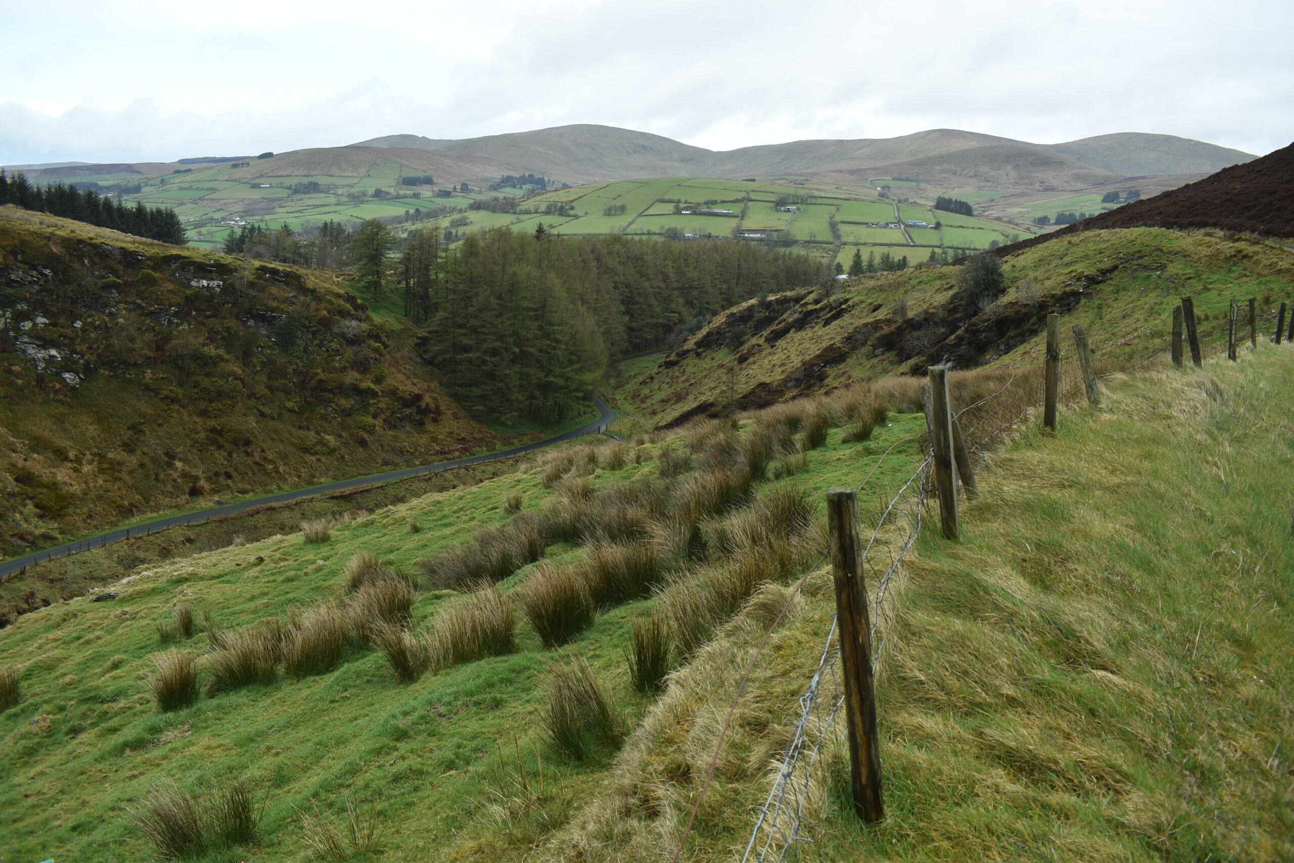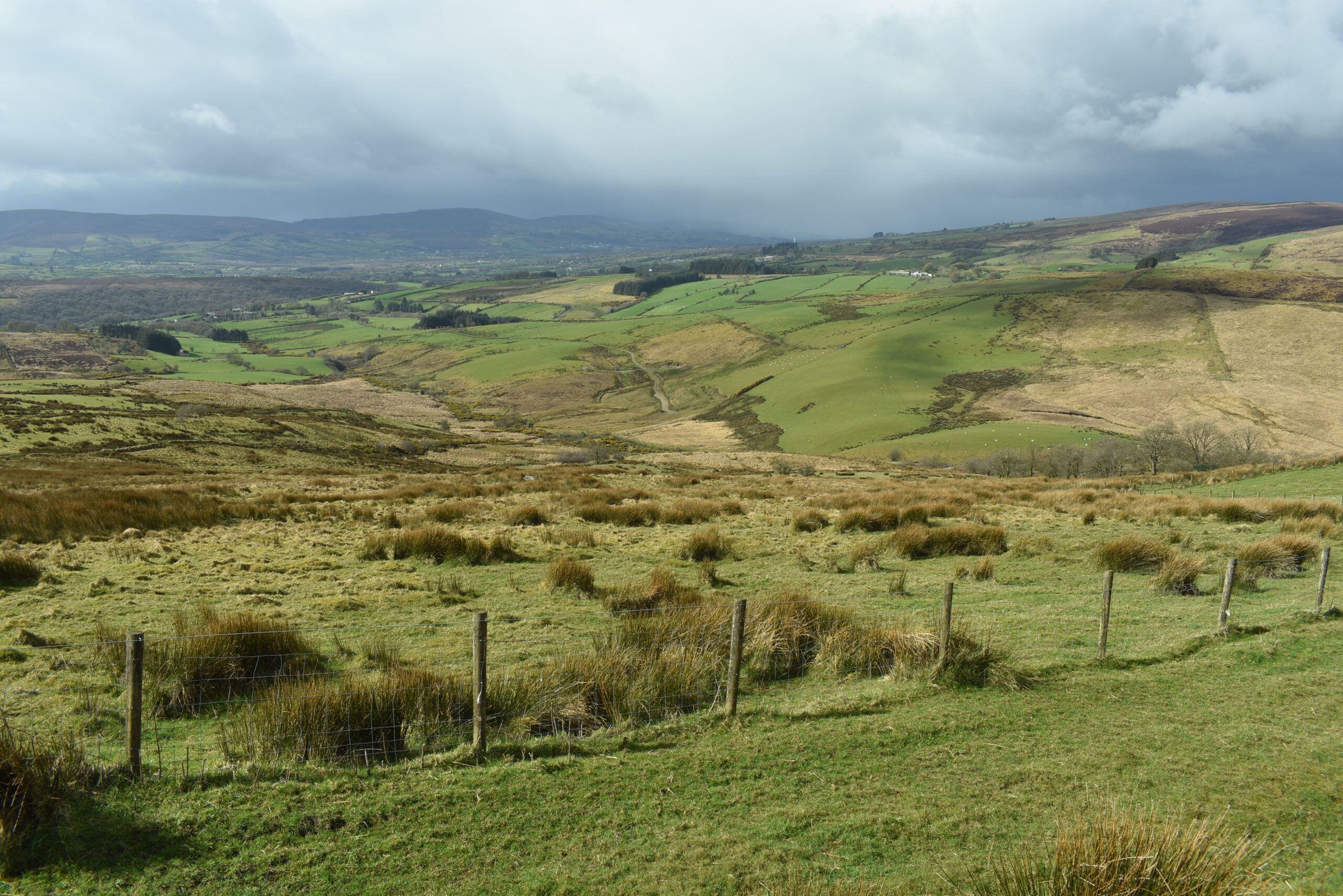 Die Landschaft der Sperrins besteht aus einer weiten, bergigen Hochfläche mit Hügeln und dazwischen weiten Wiesenflächen, die das eine oder andere Hochmoor verbergen.
