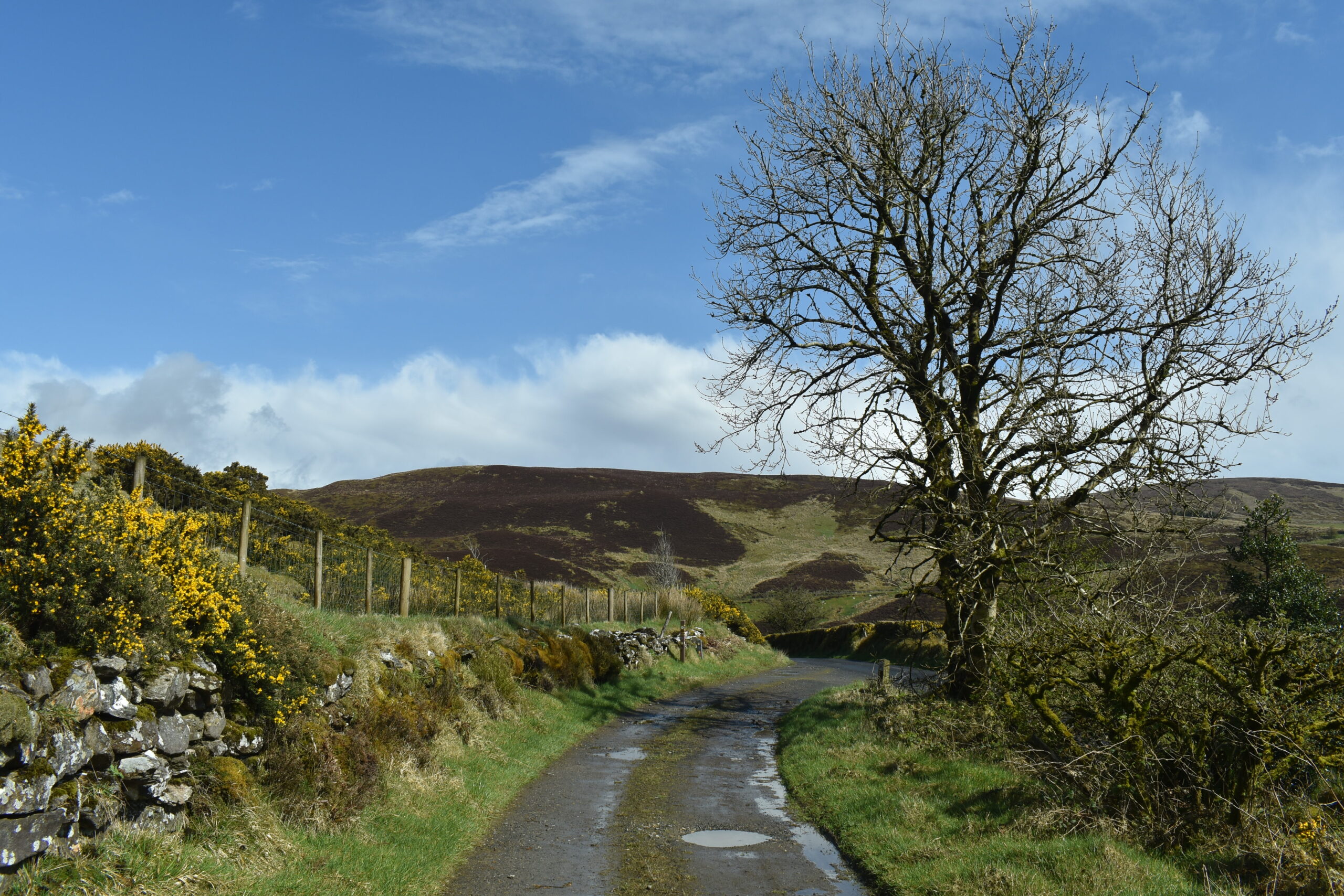 Der Wanderweg heißt “Vinegar Hill Loop” und führt durch den zentralen Teil der Sperrin Mountains, ein Bergland, das zwar nicht allzu hoch ist (maximal 678m), aber dennoch eine echte Gebirgslandschaft darstellt. Die Sperrins bedecken eine recht große Fläche von etwa 0,5 Saarland (ca. 1200 qkm) und sind, bis auf wenige Einzelhöfe und kleinere Streusiedlungen, in ihrer Kernzone nahezu unbesiedelt. Die Täler verlaufen in der Regel von West nach Ost, die Hauptstraßen auch, und wer quer dazu fahren möchte, hat nur wenige schmale Bergstraßen zur Verfügung, wie hier die Barnes Road zwischen Park und Cranagh.