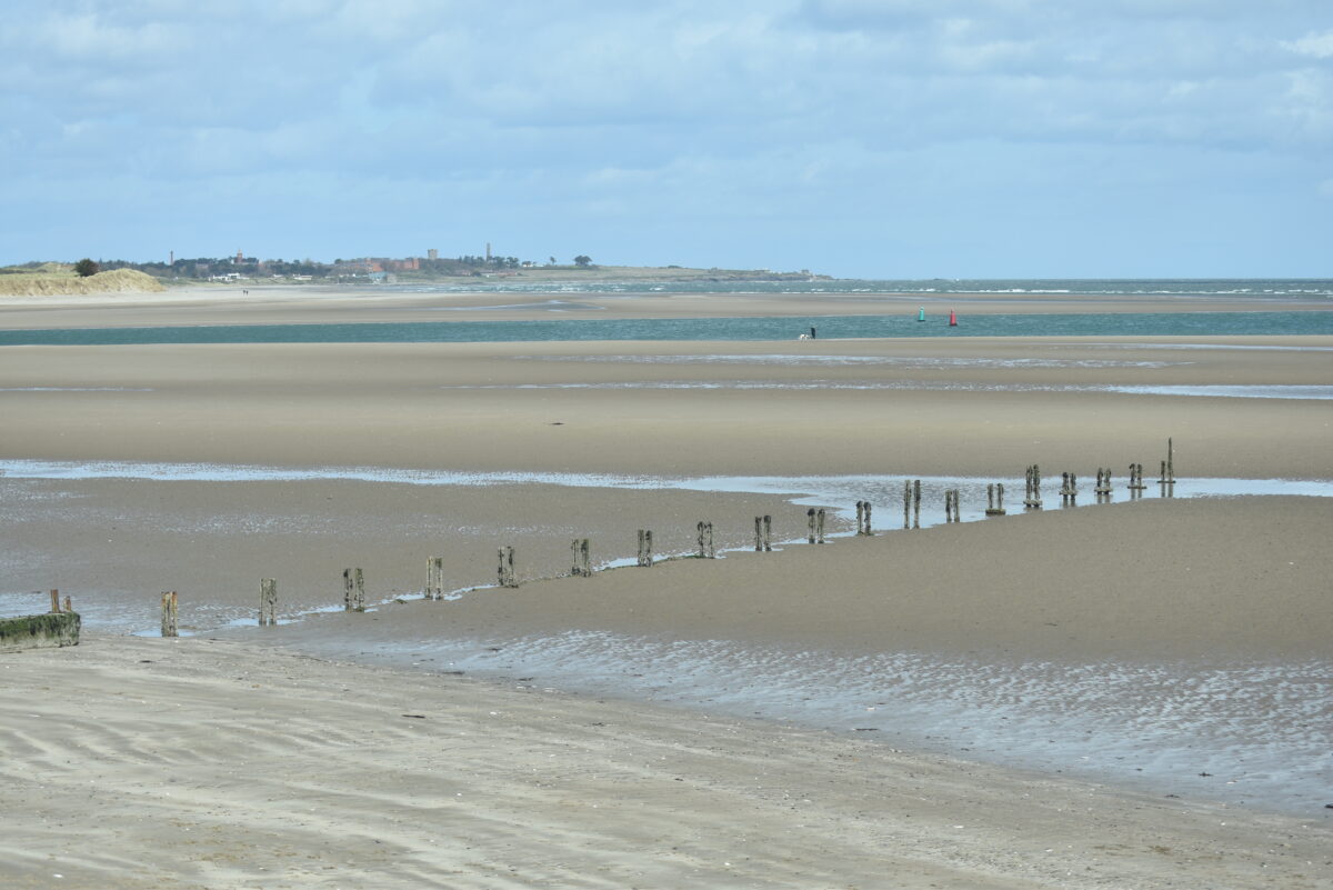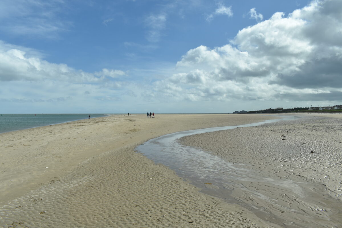 Der Fluß hat hier eine weite Sandfläche geschaffen. Vor dem Schwimmen wird aber gewarnt, weil es starke Strömungen gibt (und weil sich die Gezeiten in der flachen Küstenlandschaft stark bemerkbar machen).