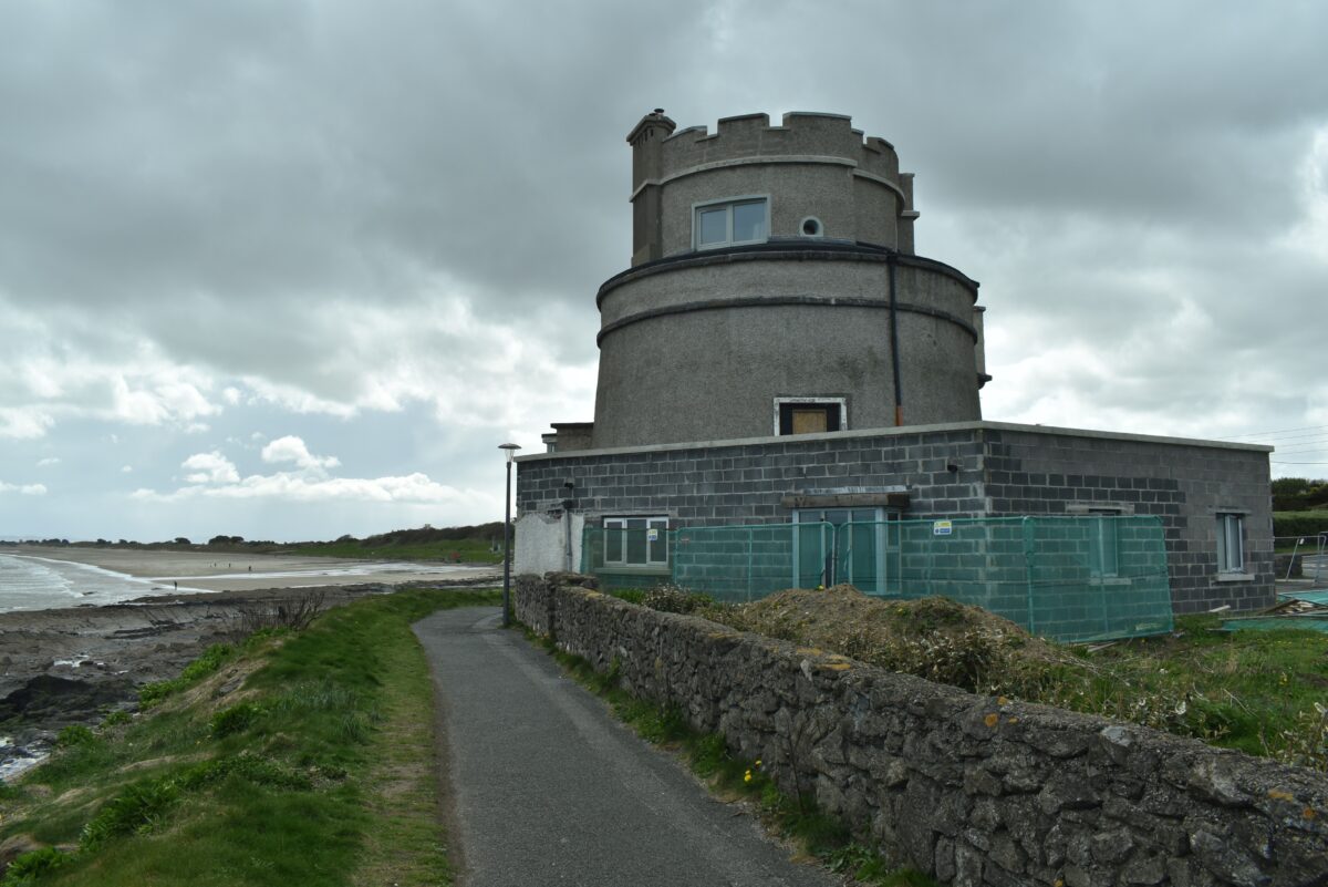 Portmarnock hat dann wieder einen größeren Badestrand; man sieht ihn hier hinter dem Martello Tower, mit dem früher die Küste bewacht wurde.
