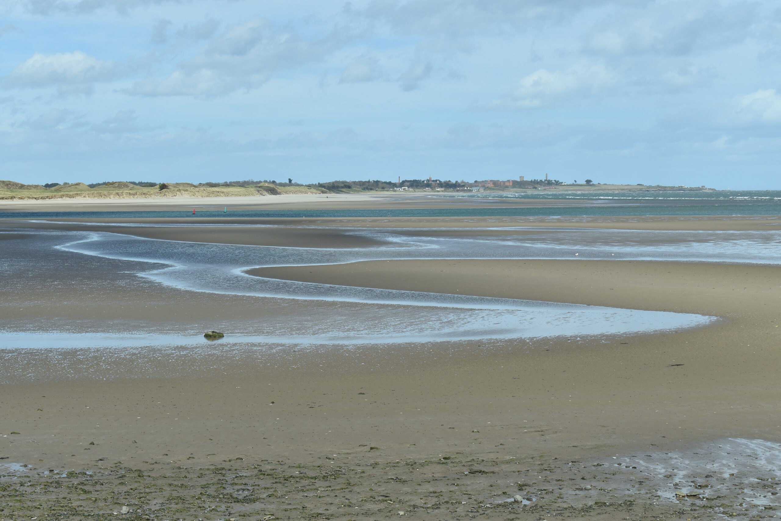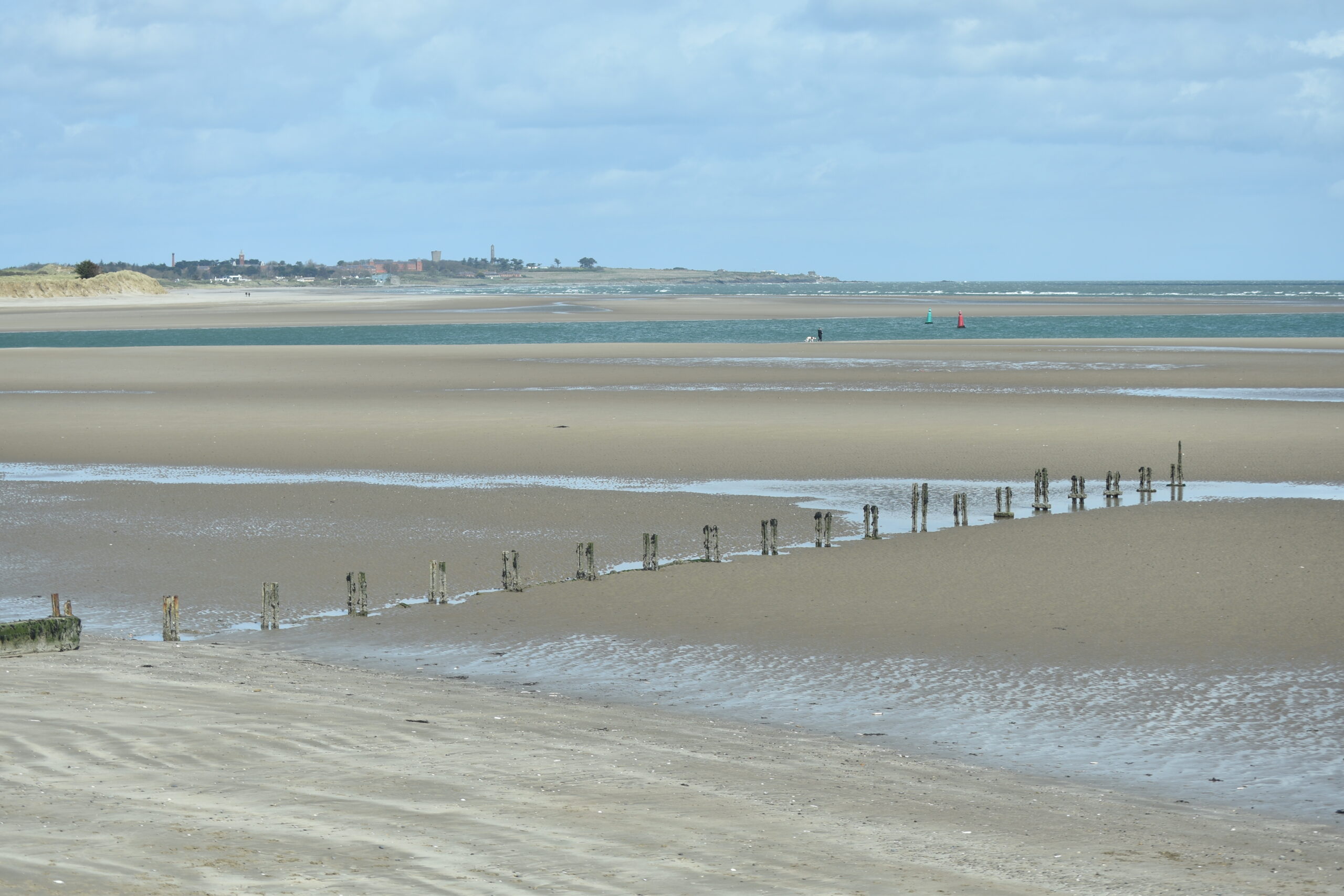 Der Fluß hat hier eine weite Sandfläche geschaffen. Vor dem Schwimmen wird aber gewarnt, weil es starke Strömungen gibt (und weil sich die Gezeiten in der flachen Küstenlandschaft stark bemerkbar machen).