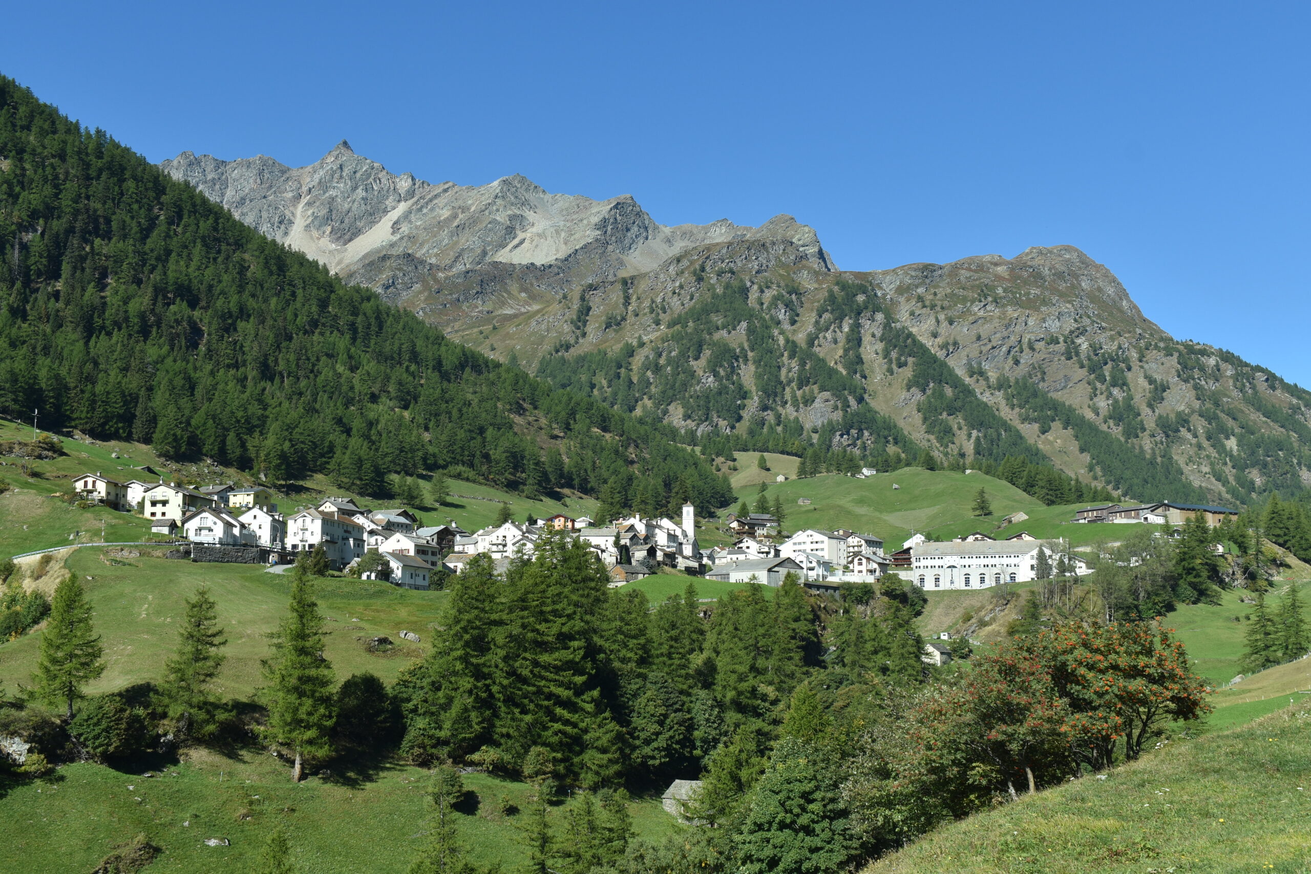 Nach der Simplon-Paßhöhe kann man das Auto einfach rollen lassen und kommt nach etwa neun Kilometern in Simplon-Dorf an.